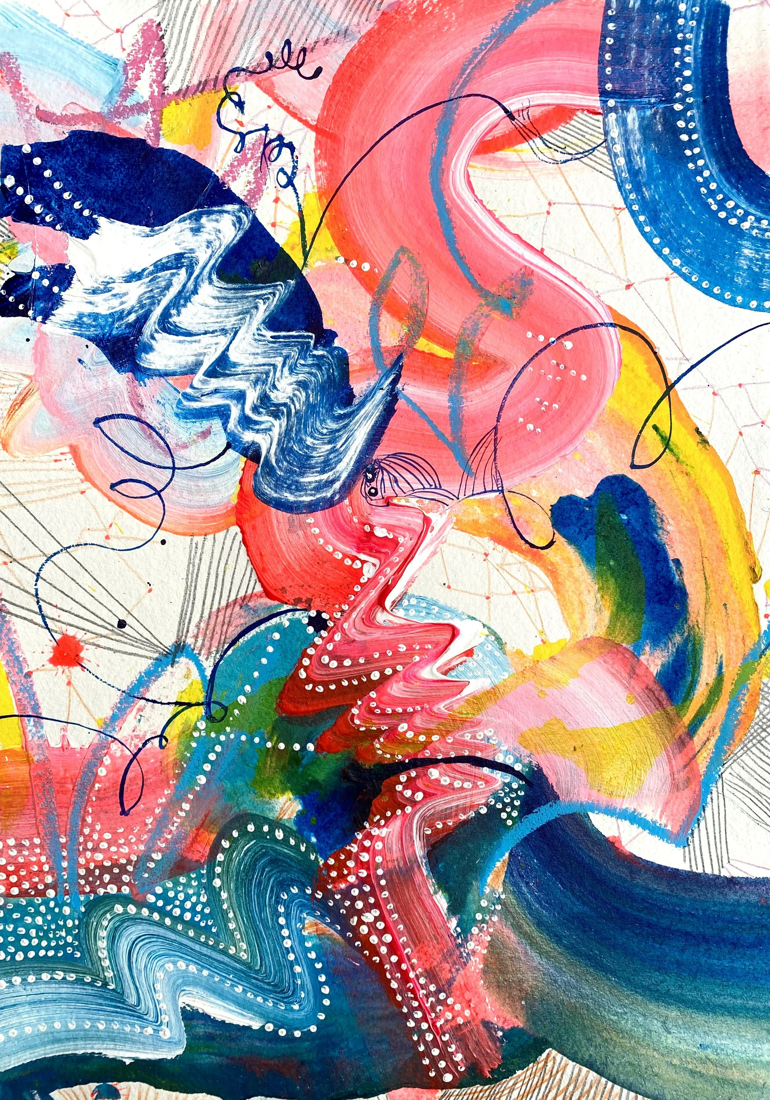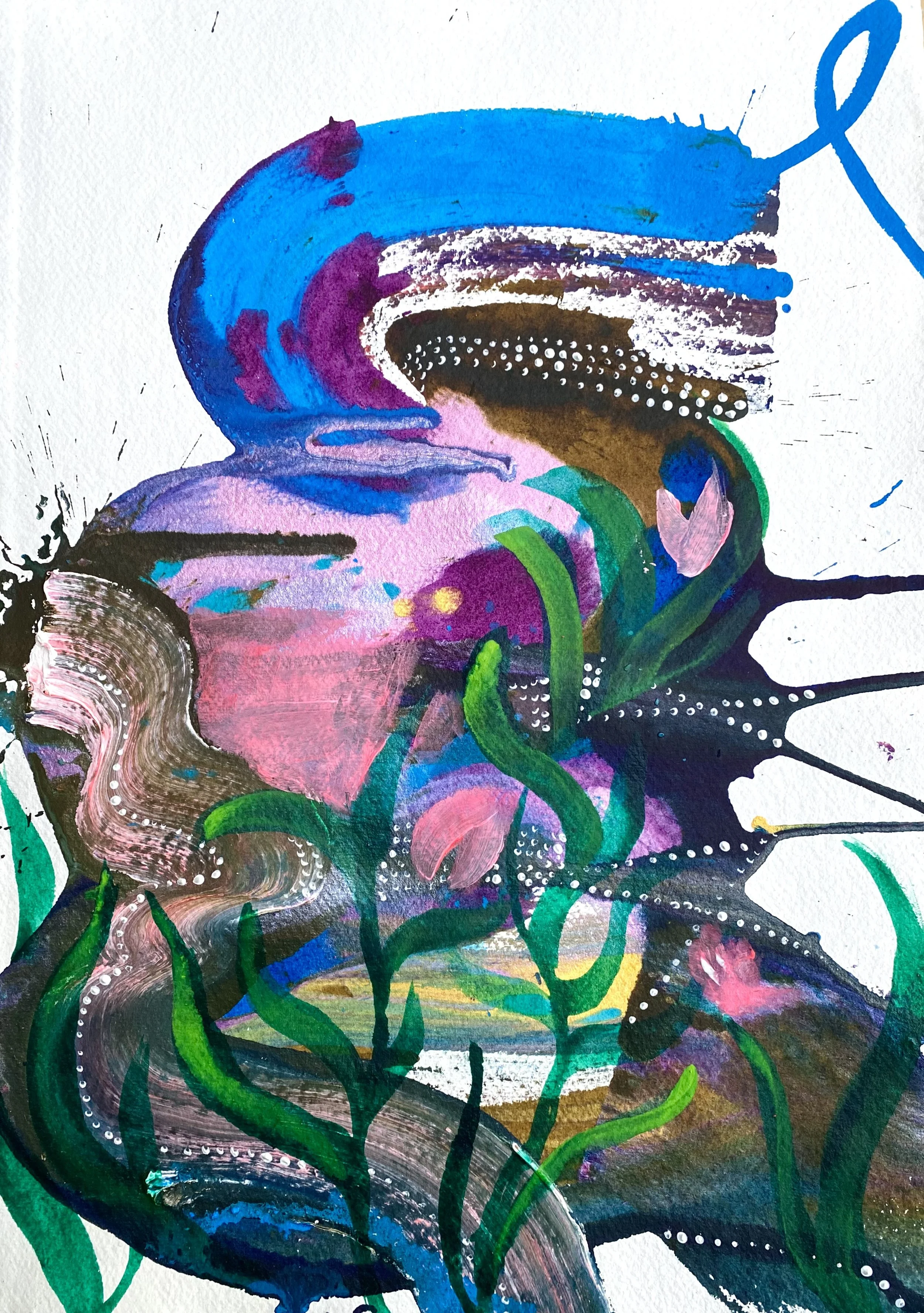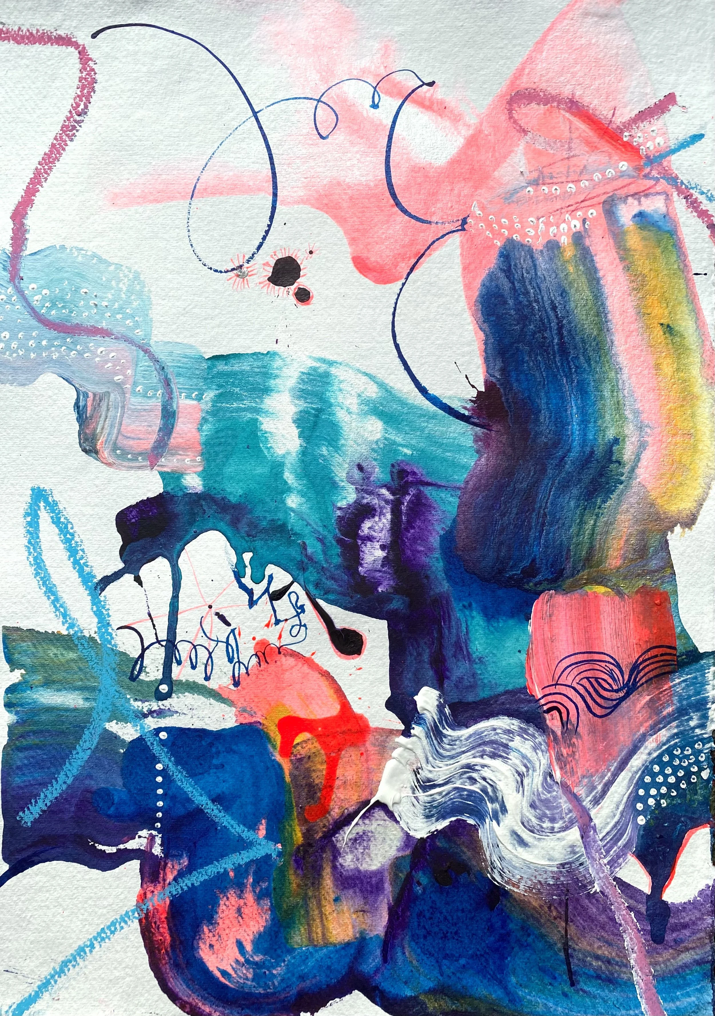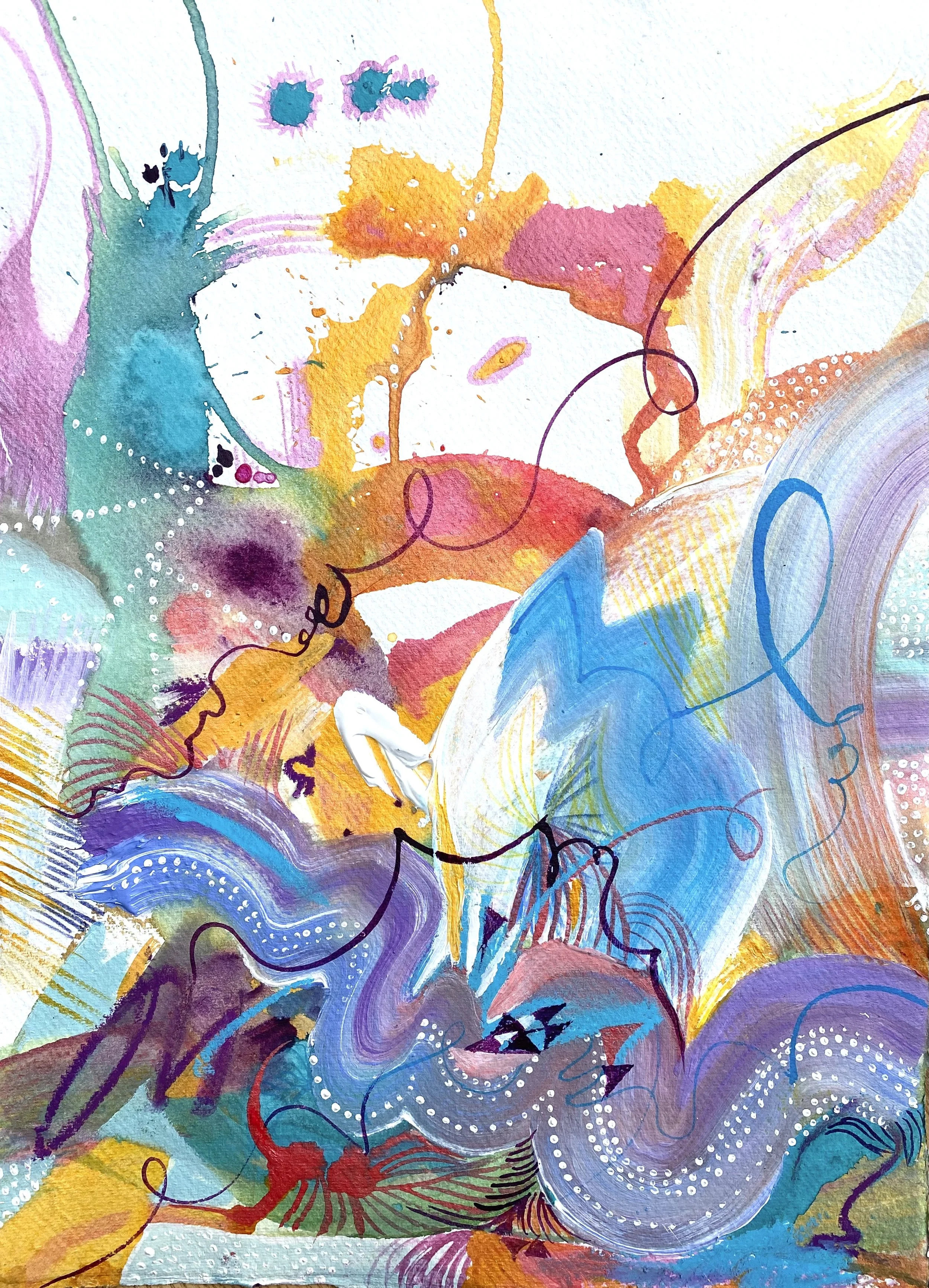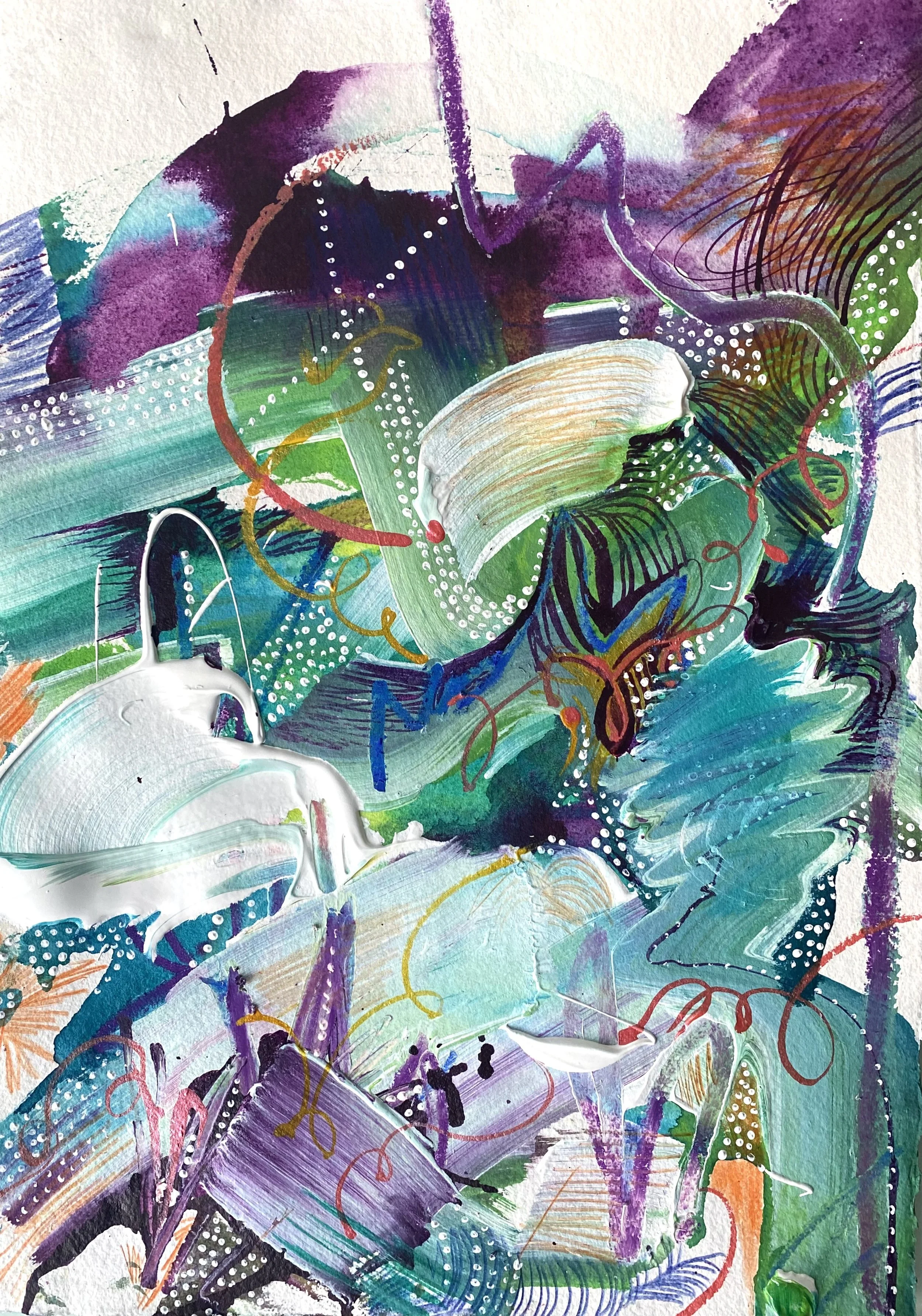 Soft, delicate and floating, like a balloon in the sky held in place, suspended by a thread of hair anchored to a rock. There is an element of travel, gliding from my intention into a journey of its own. The evolution of form.
