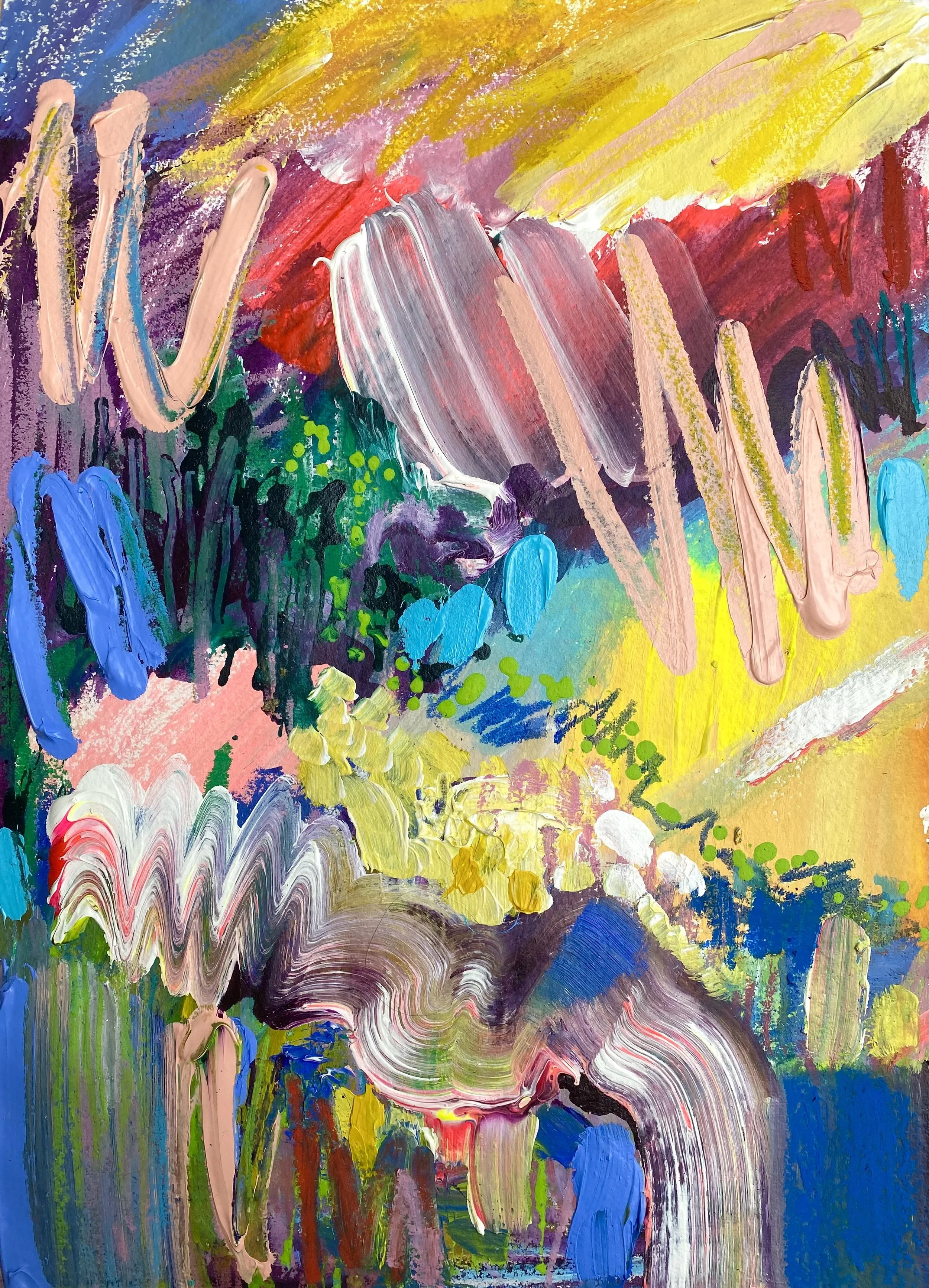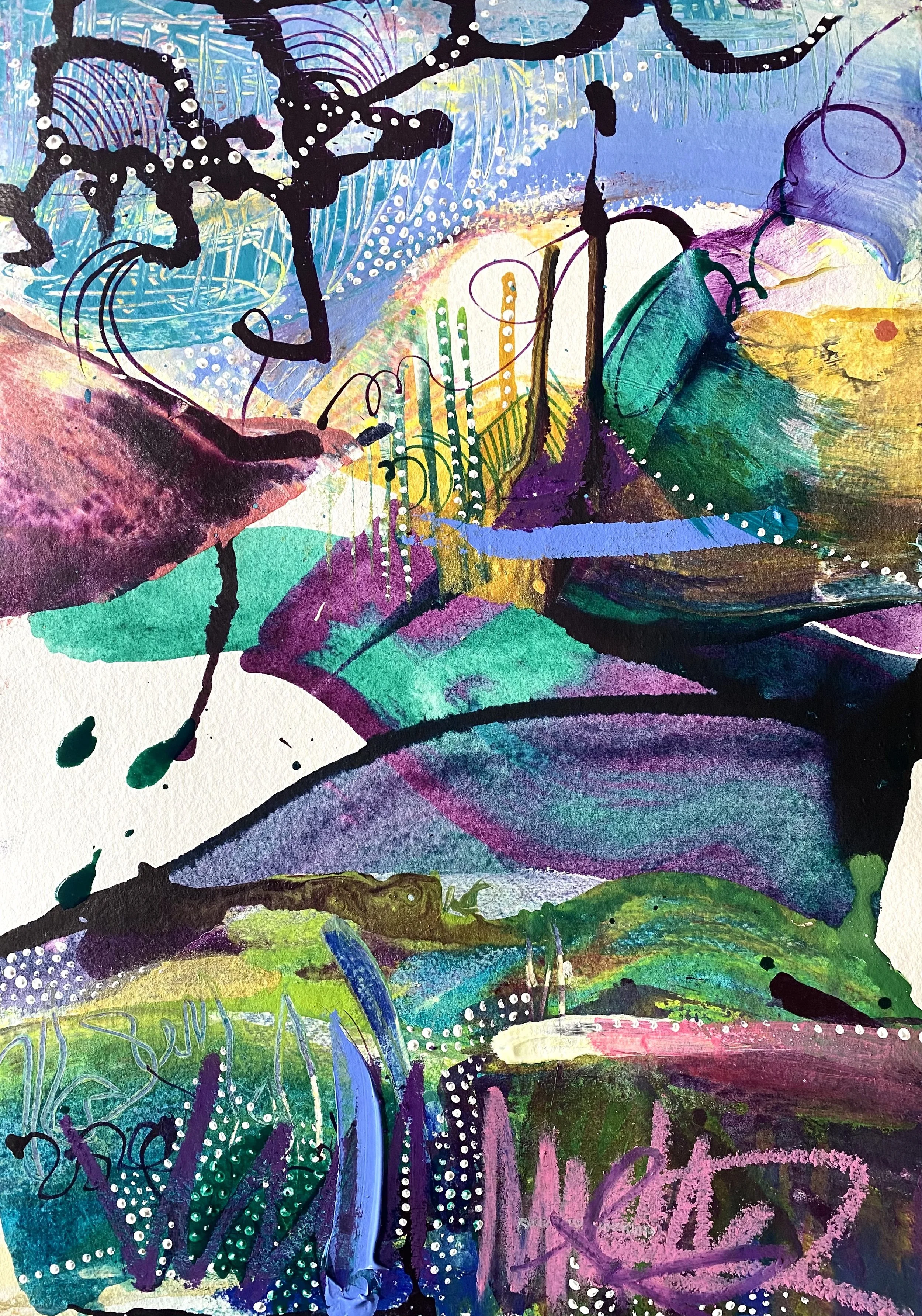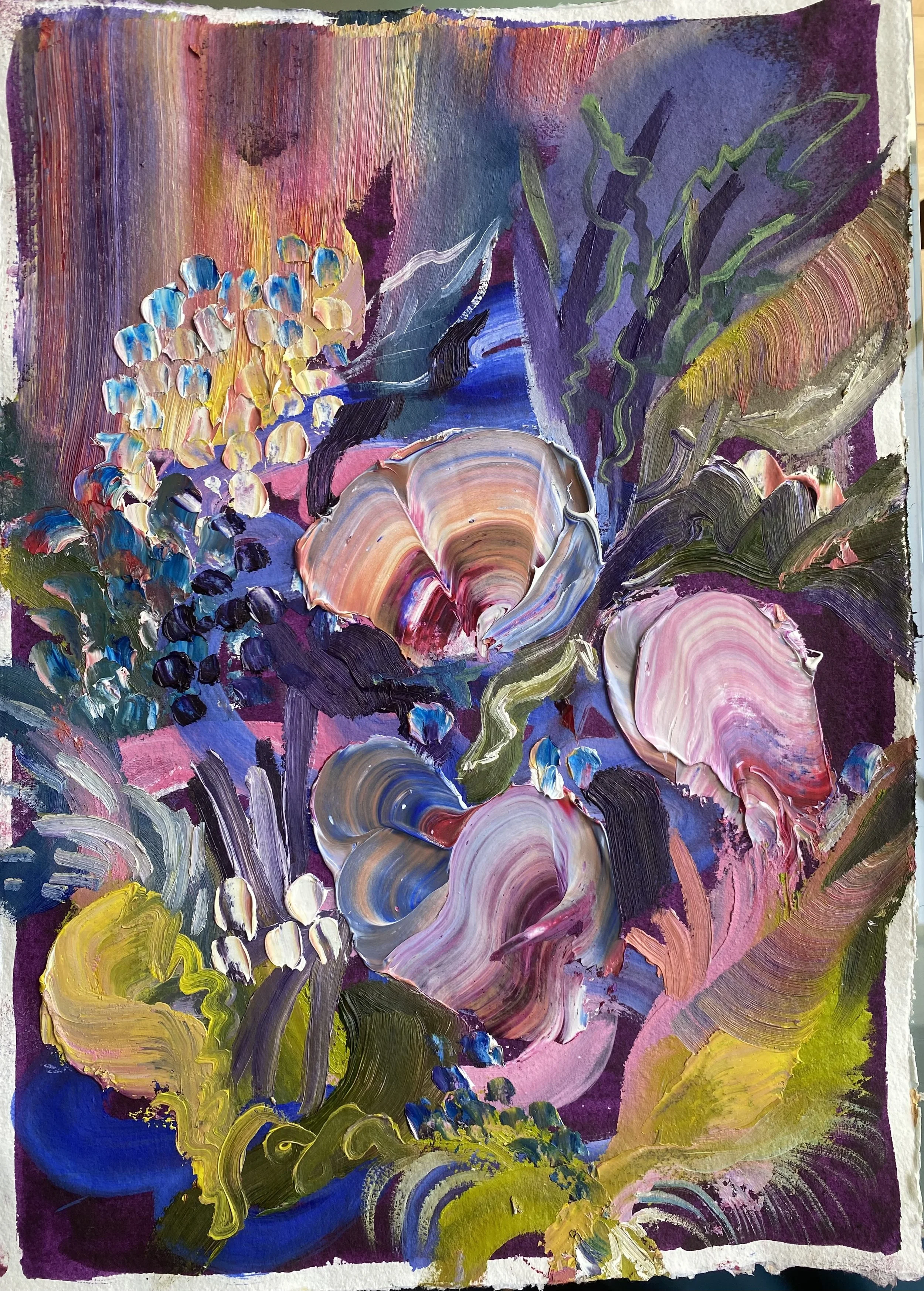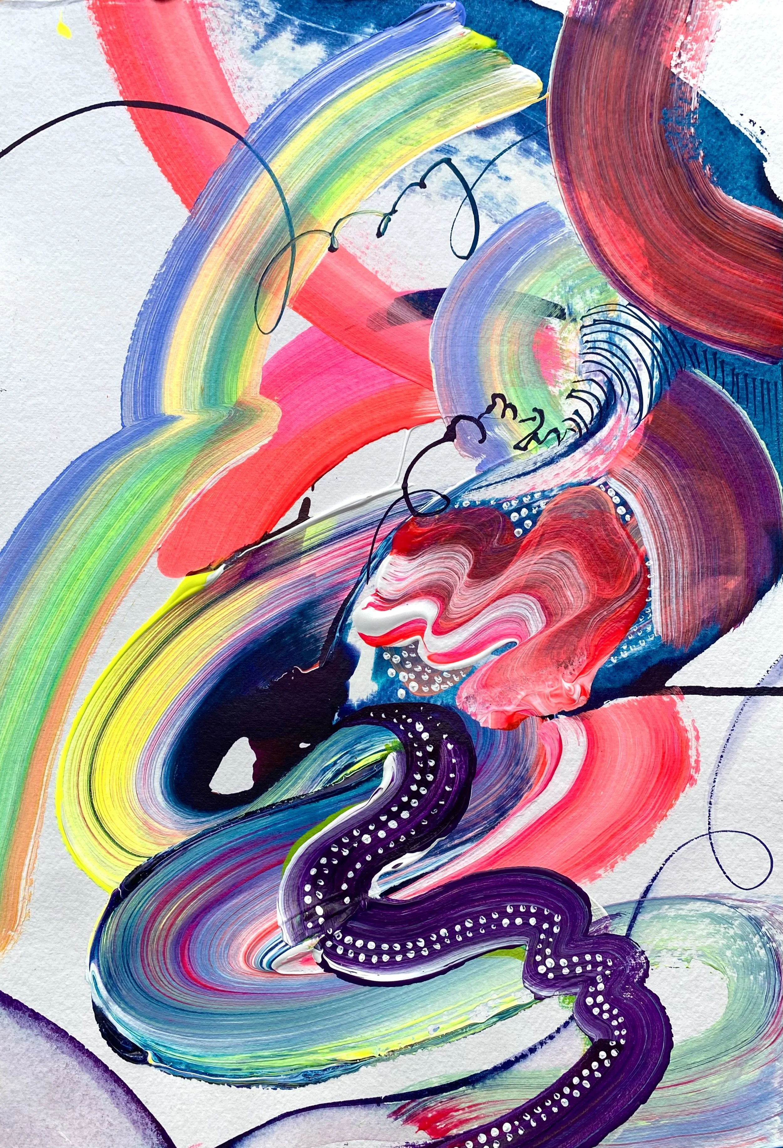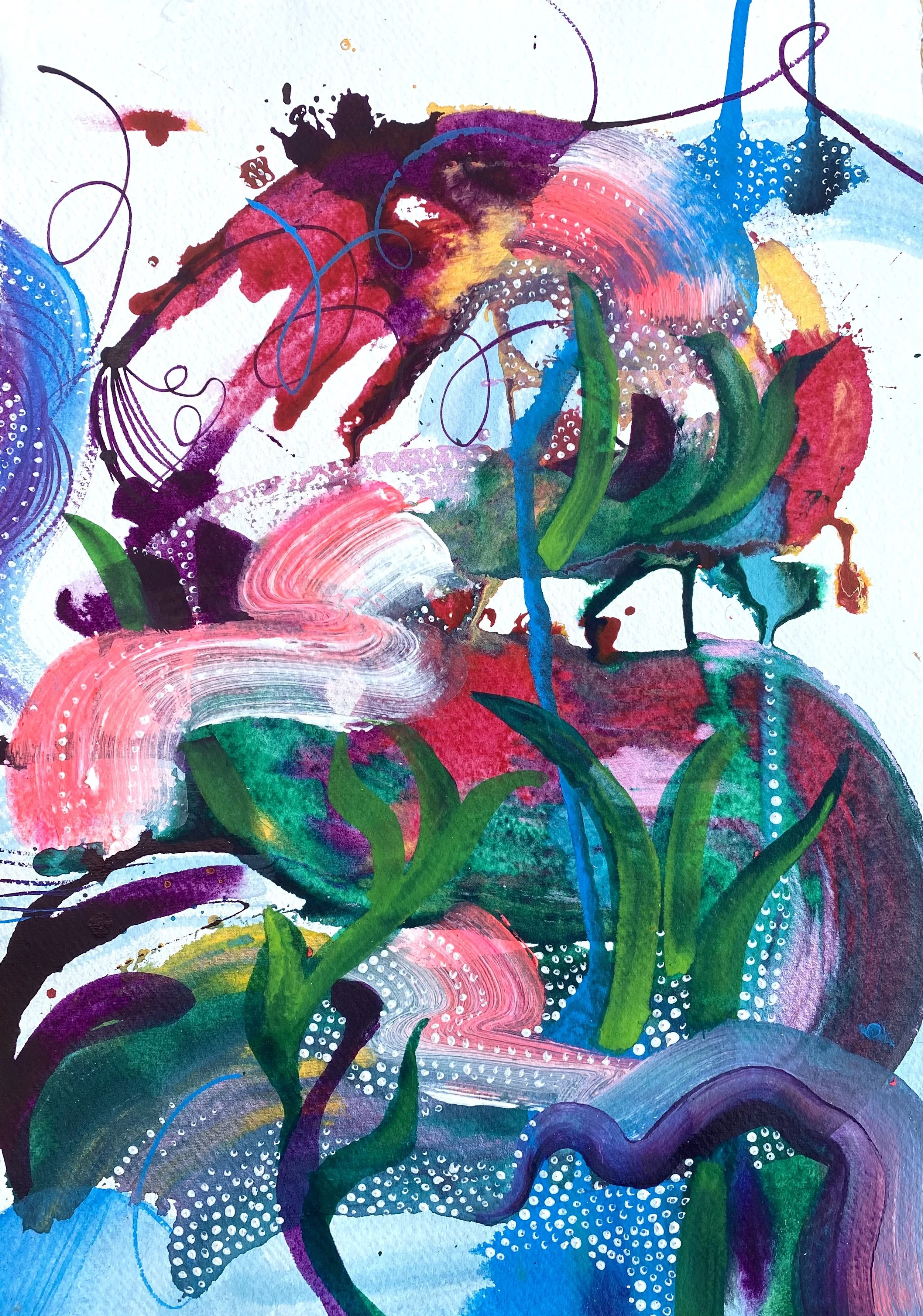 Soft, delicate and floating, like a balloon in the sky held in place, suspended by a thread of hair anchored to a rock. There is an element of travel, gliding from my intention into a journey of its own. The evolution of form.