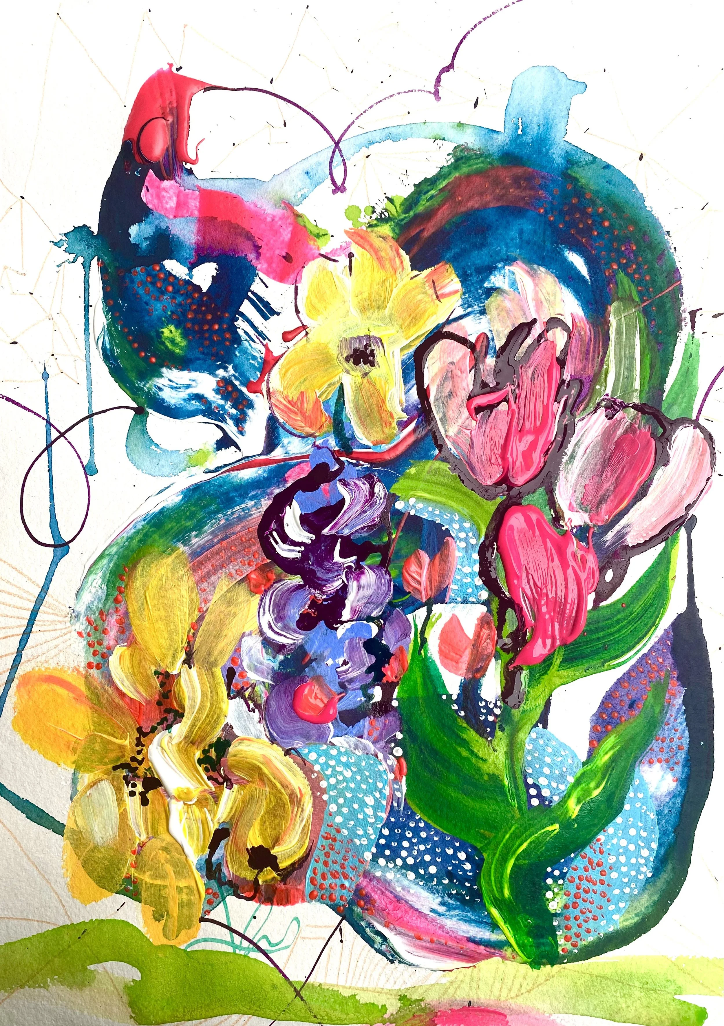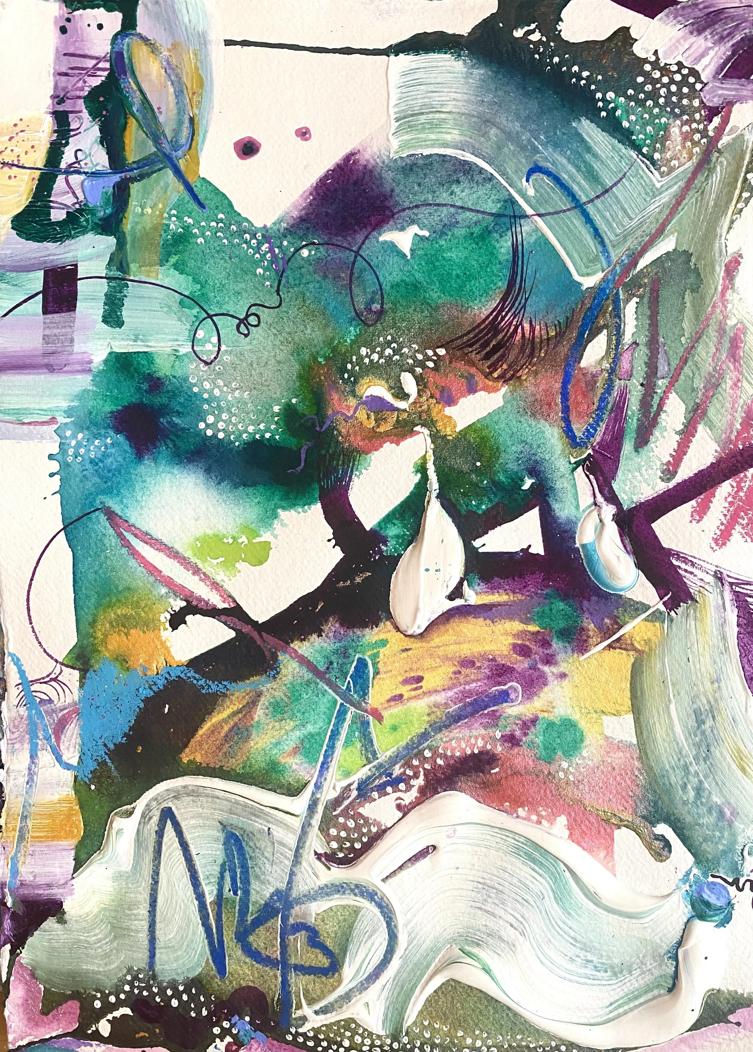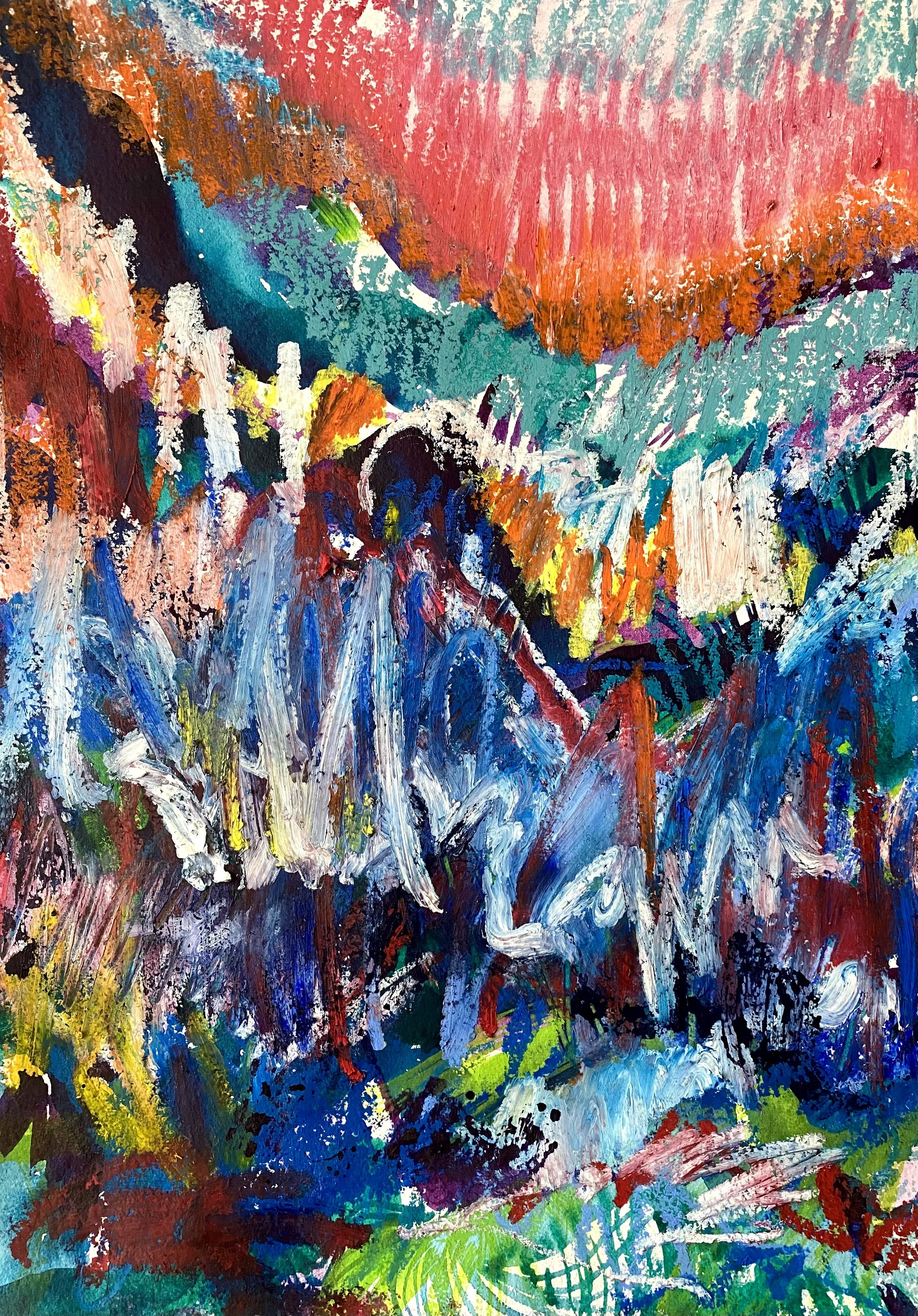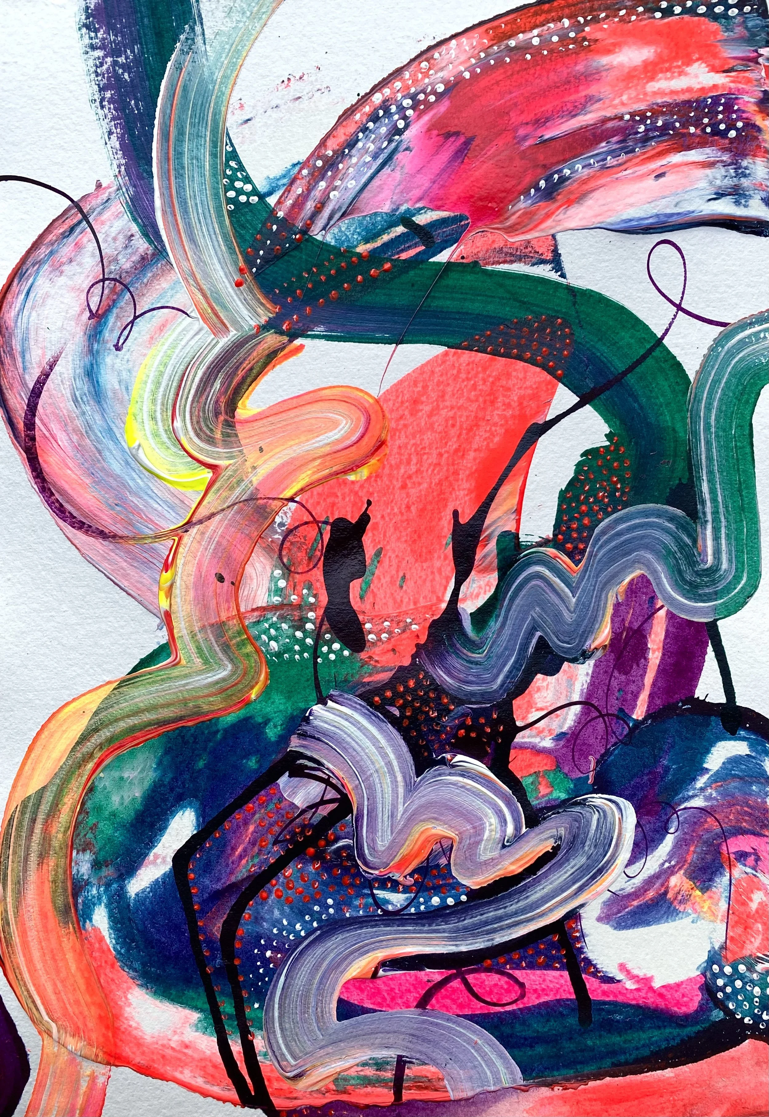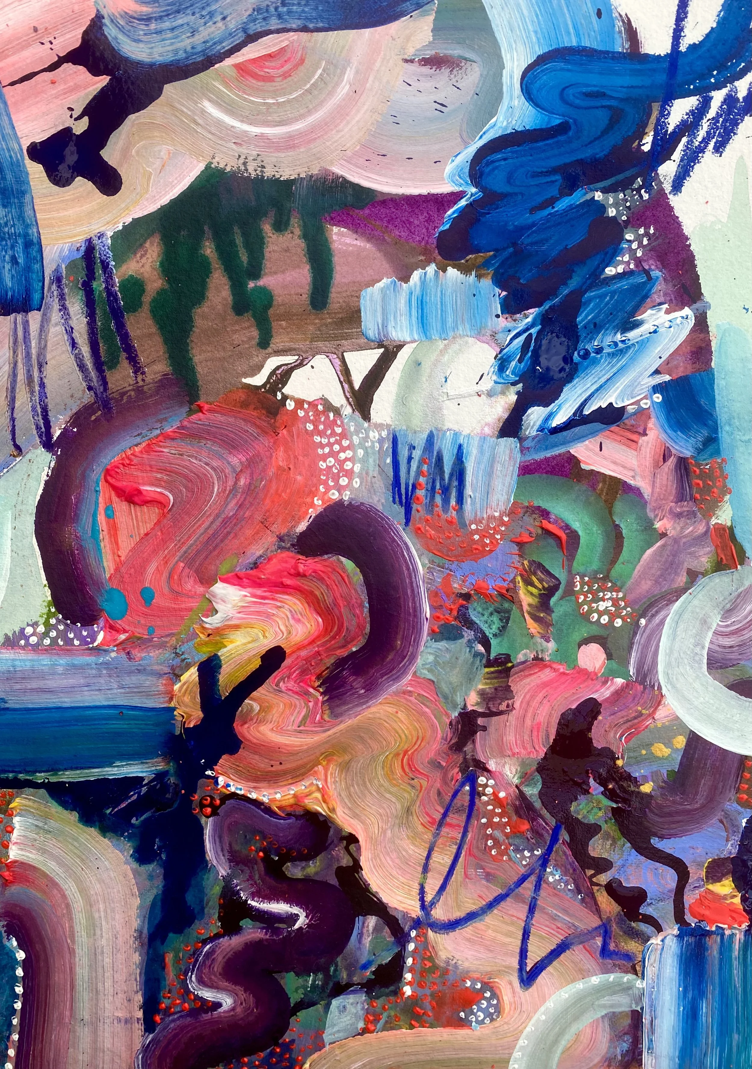Soft, delicate and floating, like a balloon in the sky held in place, suspended by a thread of hair anchored to a rock. There is an element of travel, gliding from my intention into a journey of its own. The evolution of form.