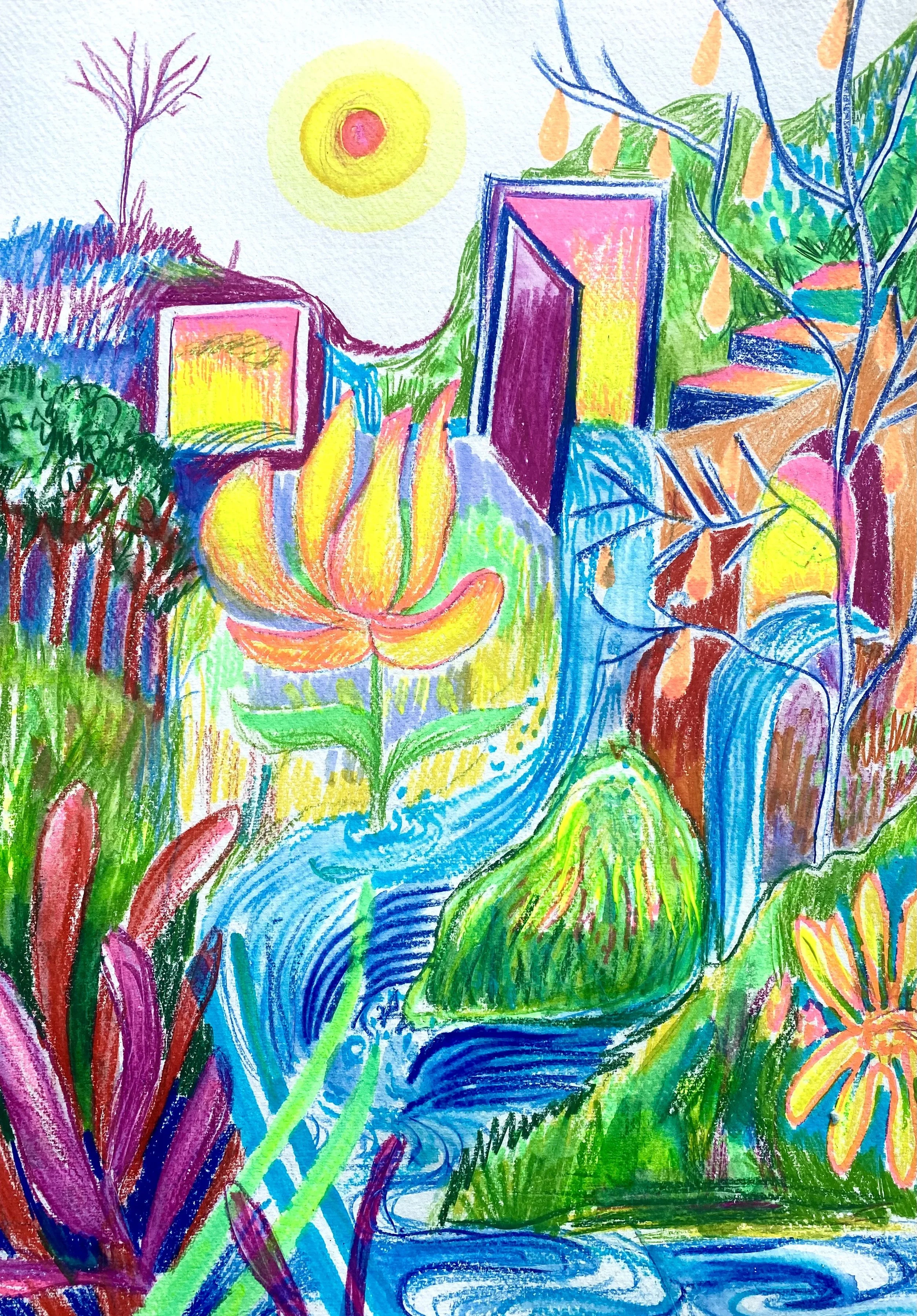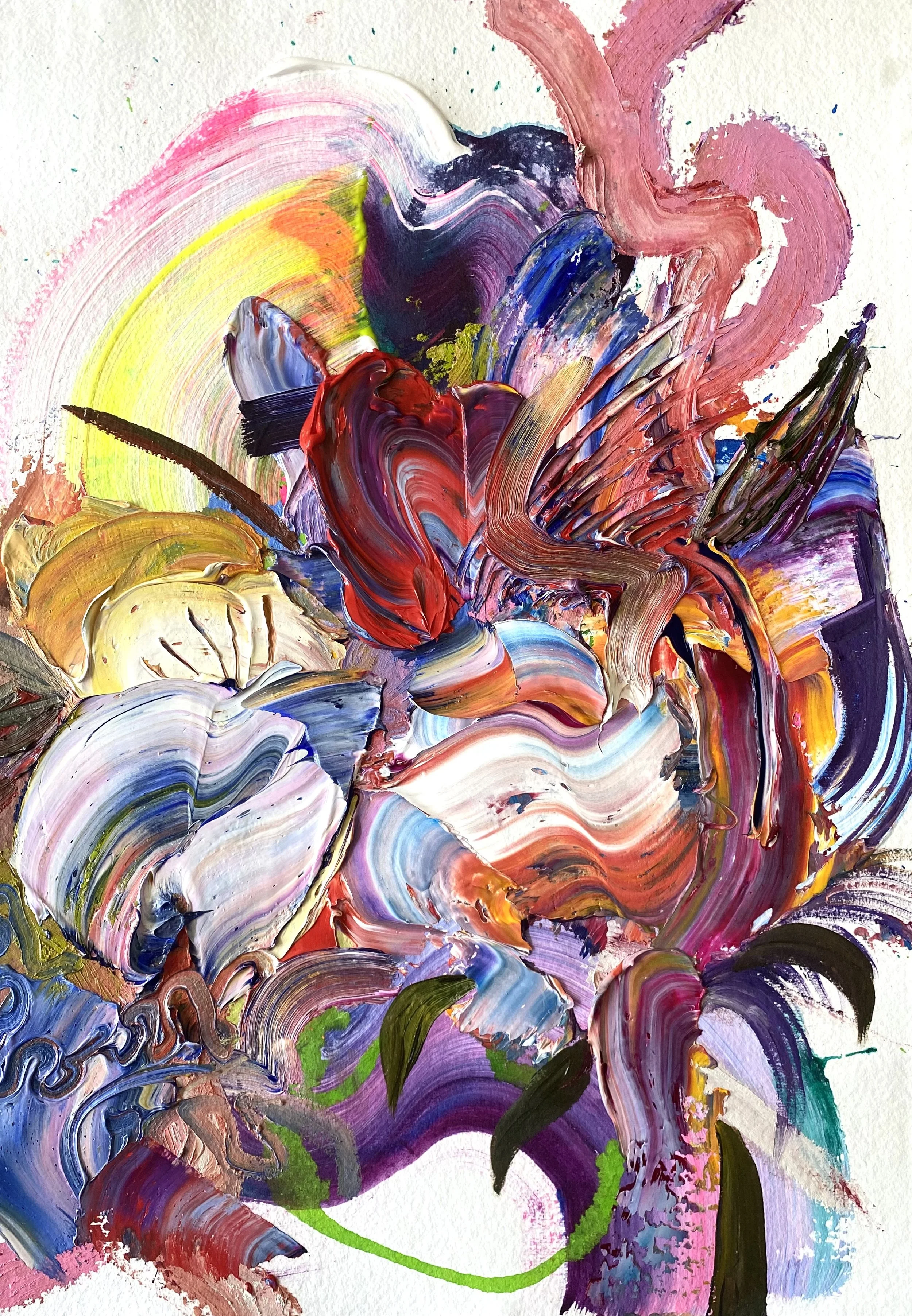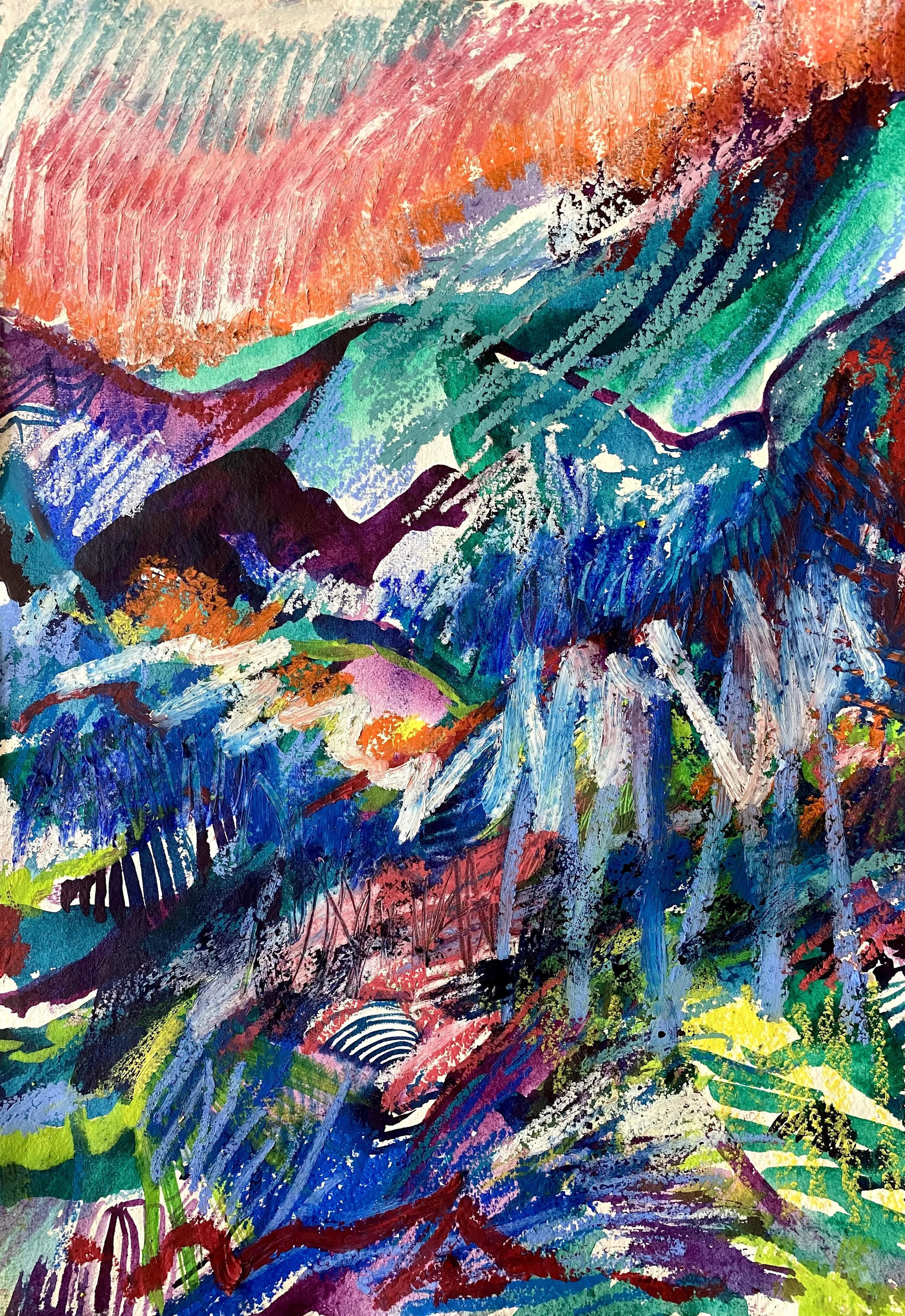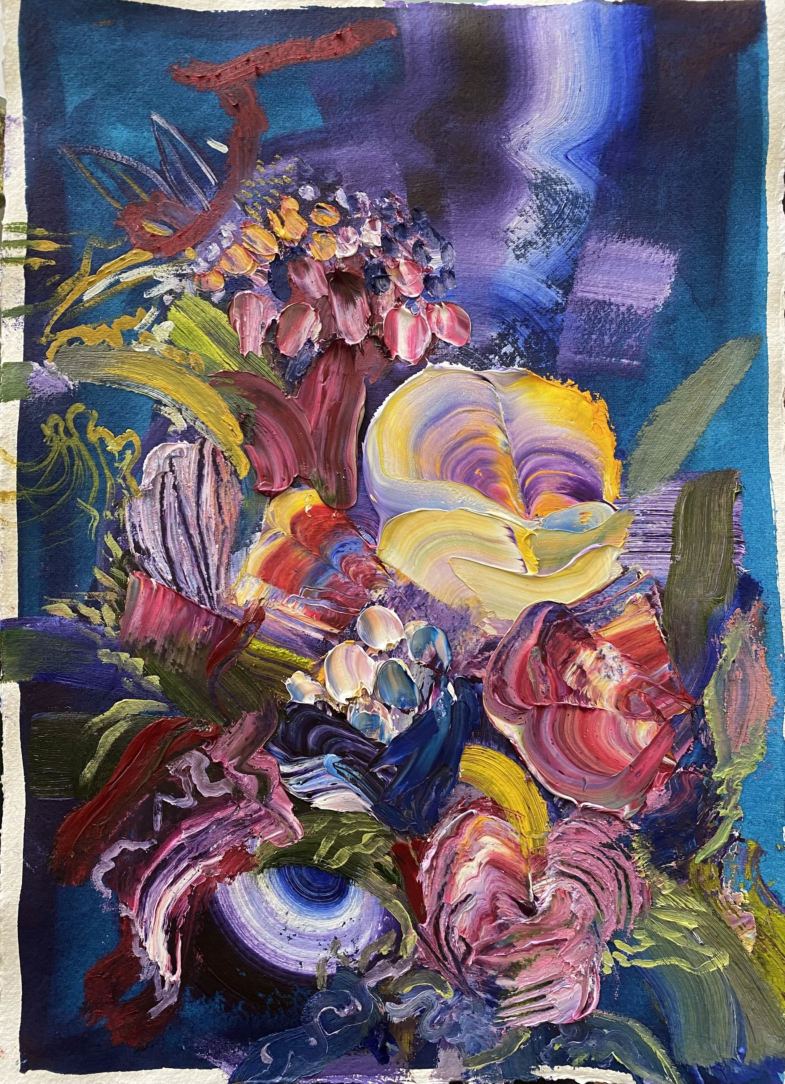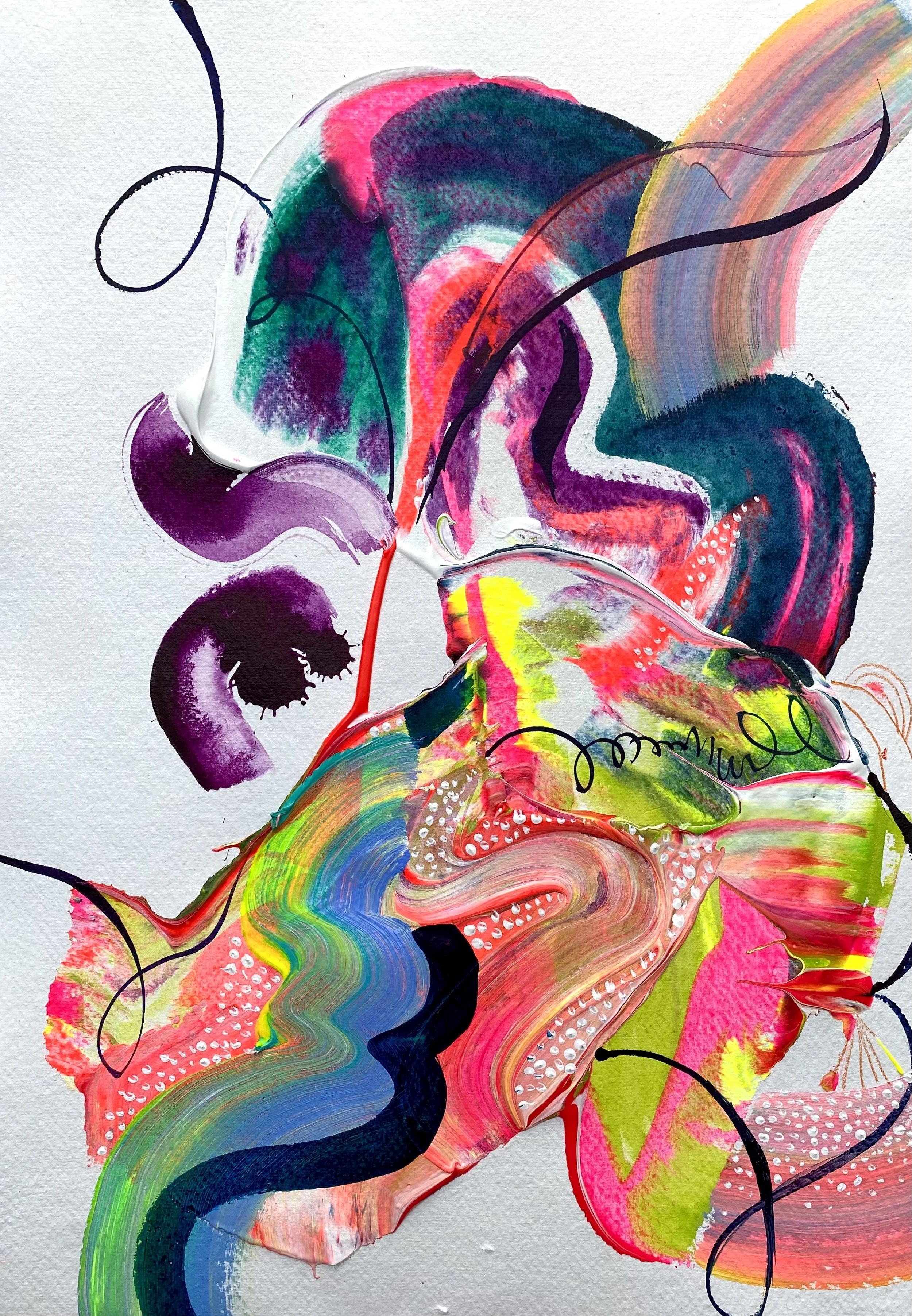 Soft, delicate and floating, like a balloon in the sky held in place, suspended by a thread of hair anchored to a rock. There is an element of travel, gliding from my intention into a journey of its own. The evolution of form.