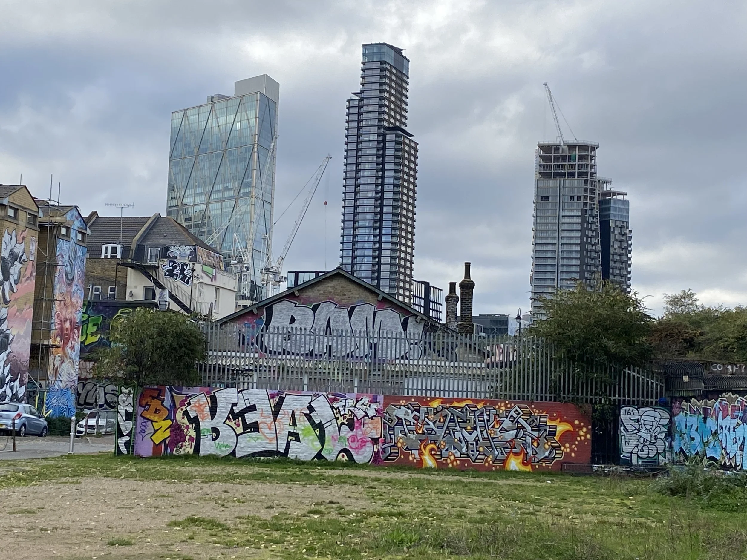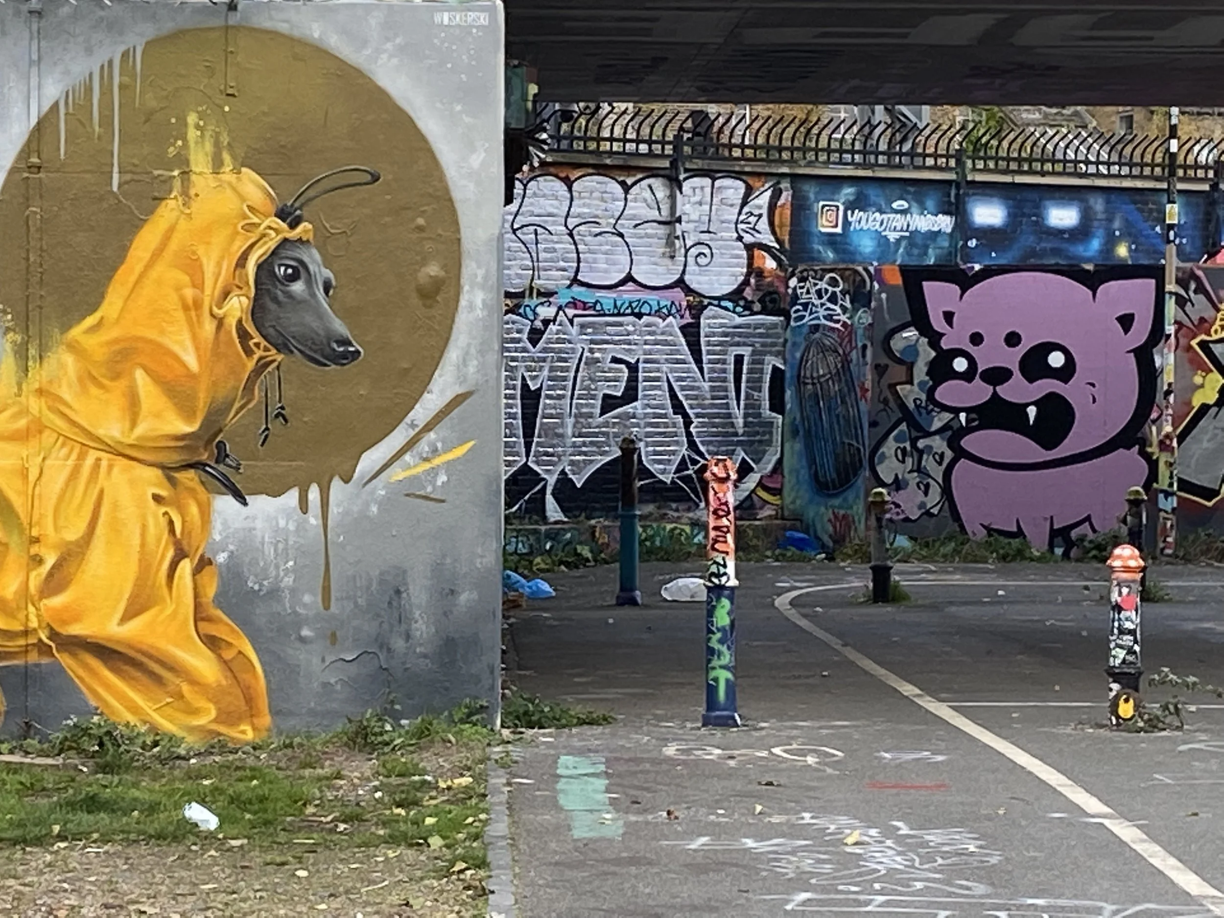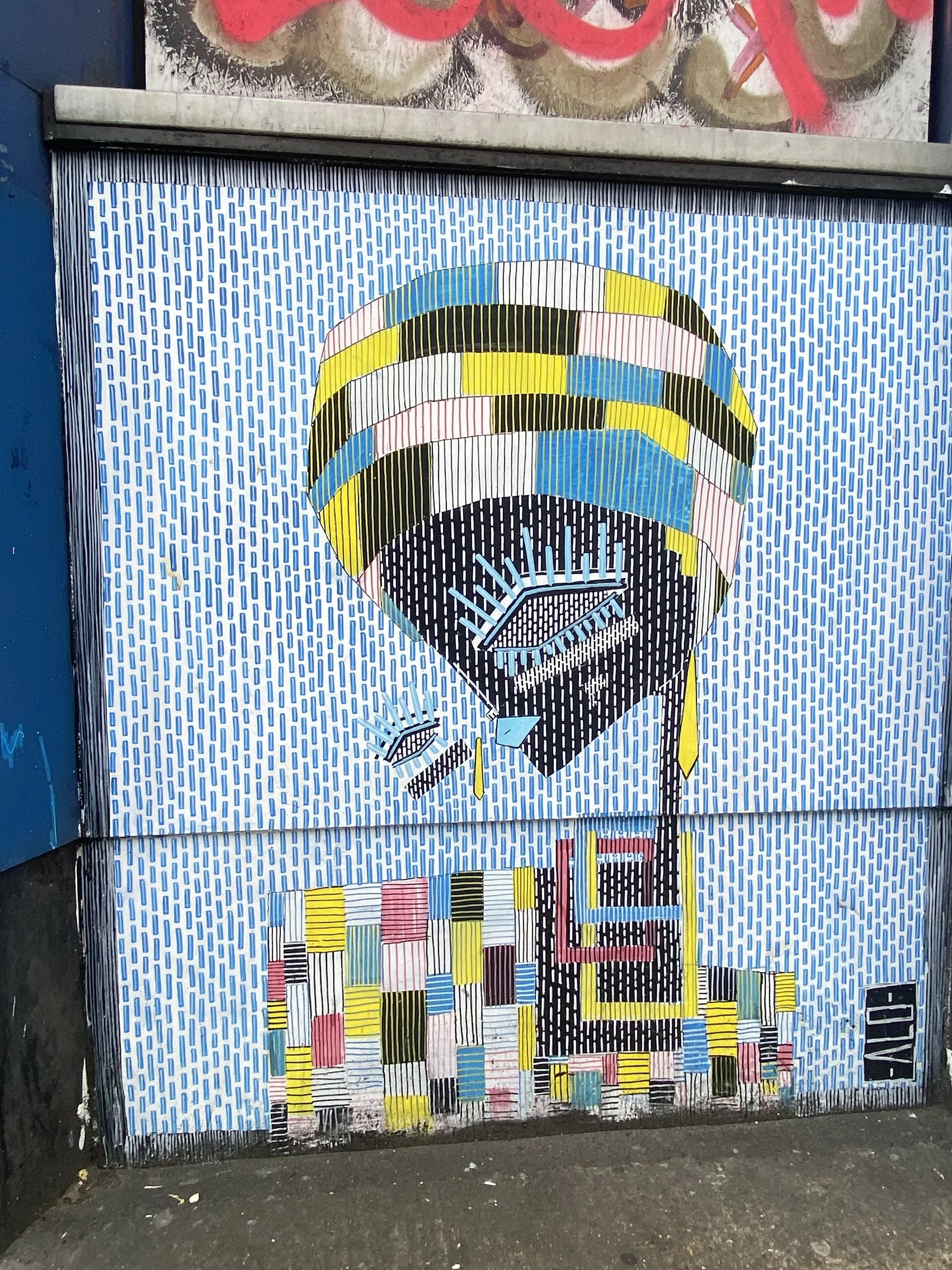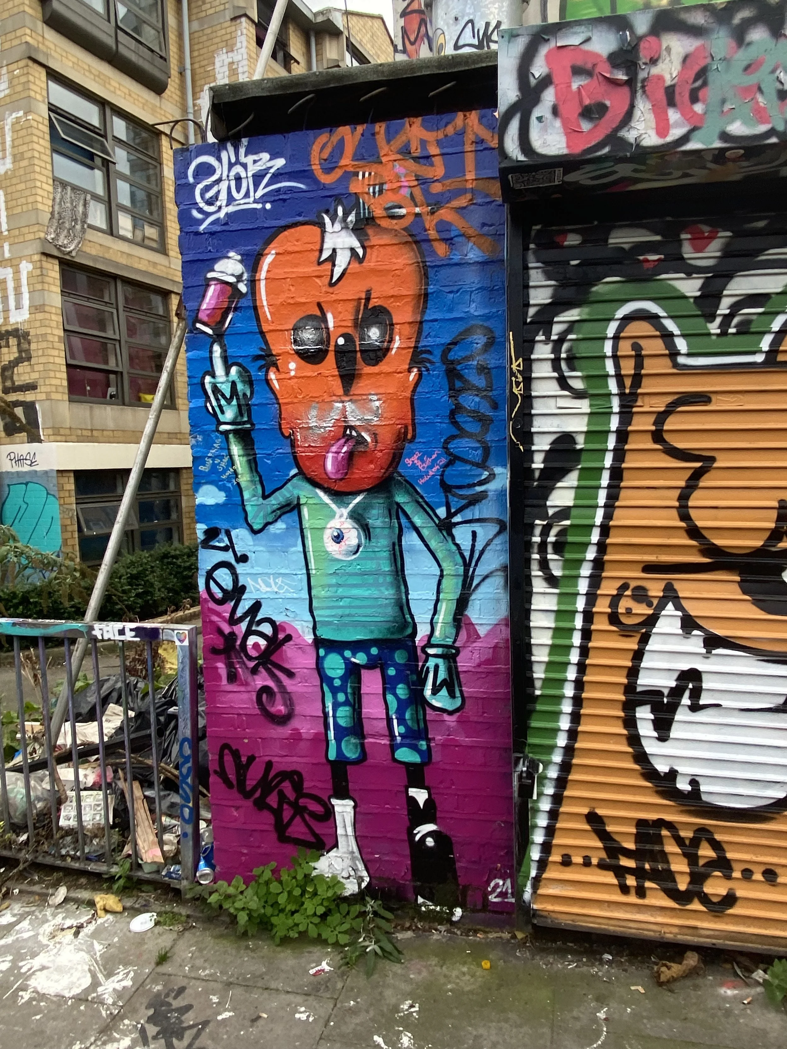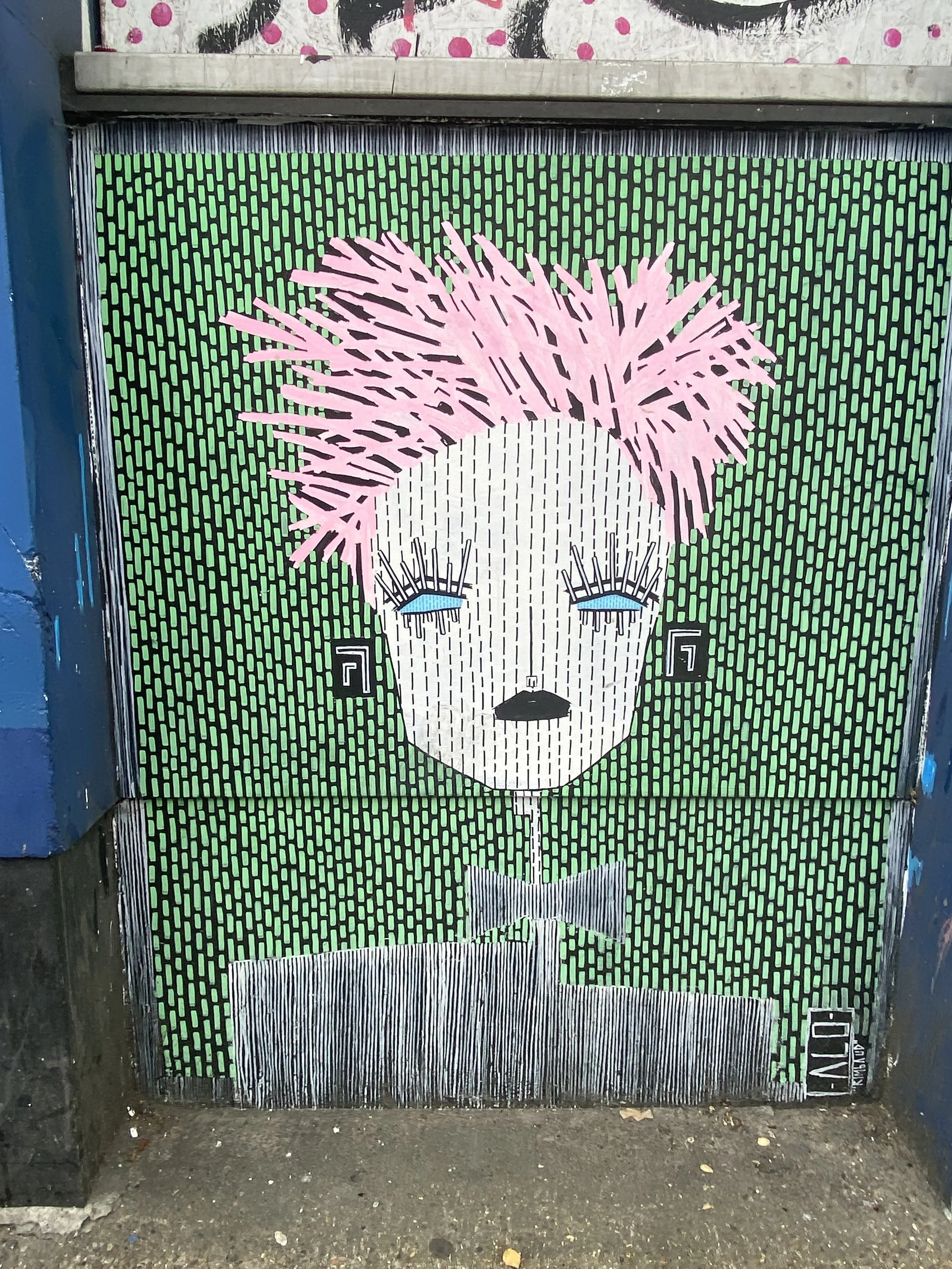 I love graffiti and I’m not really sure what it is that pulls me in, be it the colour, the vastness and there size of it or simply the clean graphic and repeat in pattern. It’s not always that way, sometimes it’s layered and old, peeling away histories and stories of what was before. Walking around London E1, Brick Lane and Shoreditch, with my daughter and her boyfriend. On her 14th birthday I took photos of her with graffiti that became the the inspiration for my #LibertyOpenCall winning painting. Now three years on she’s taking the photo’s, portraits. Except I can’t help myself either - I’m not just going to hang around. I feel that same energy of capturing a moment, back in the day I was traveling worldwide. I constantly see frozen moments captured in time, compositions and interactions. This time I let it pass, she has the camera, I have the phone. Instead I stick with the wall and enjoy what East London has to offer. My favourite moment walking into a park by the railway tracks, surrounded wall to wall with tags and in front a boy of 10 plays his drums out on the grass.
