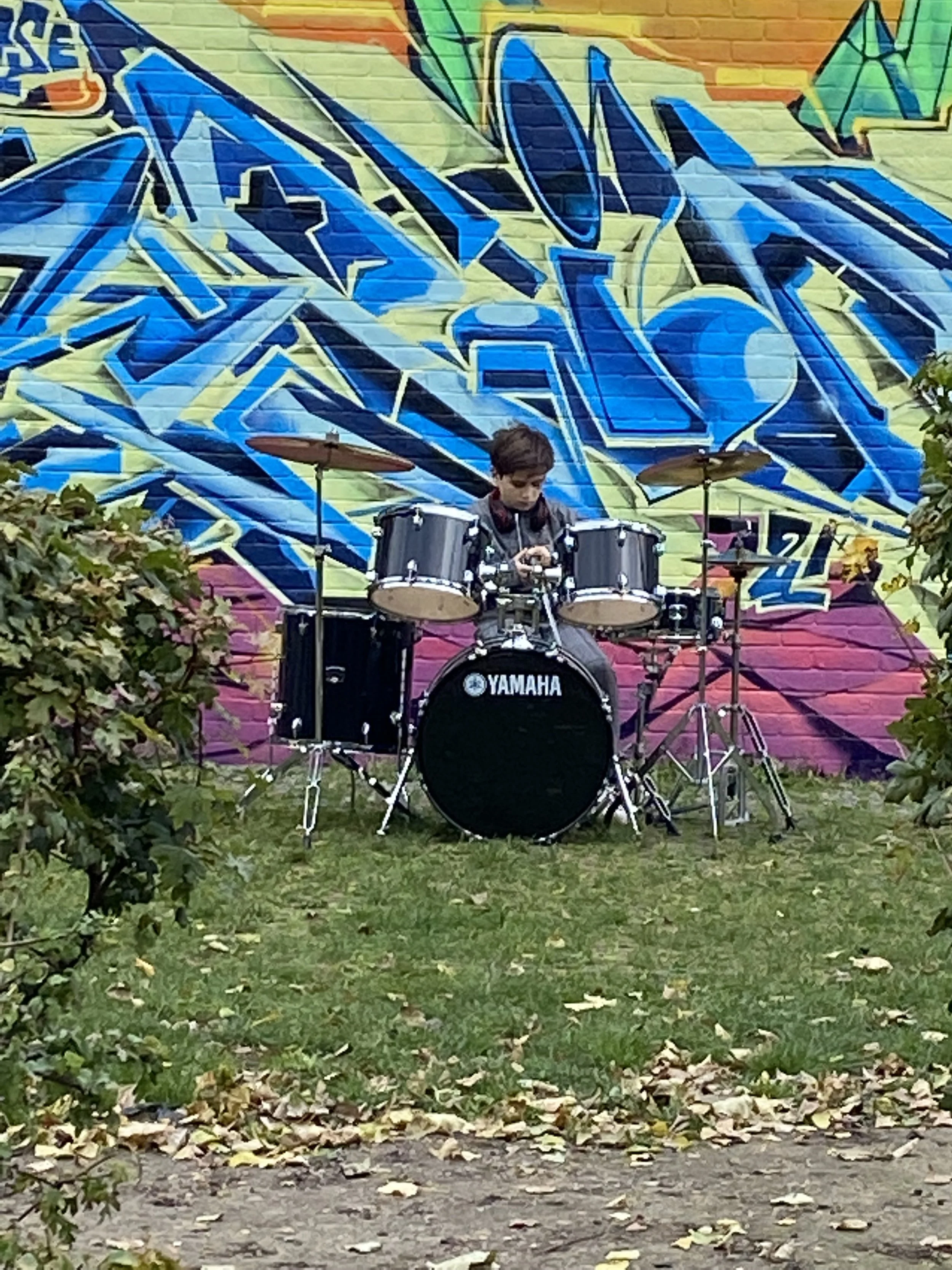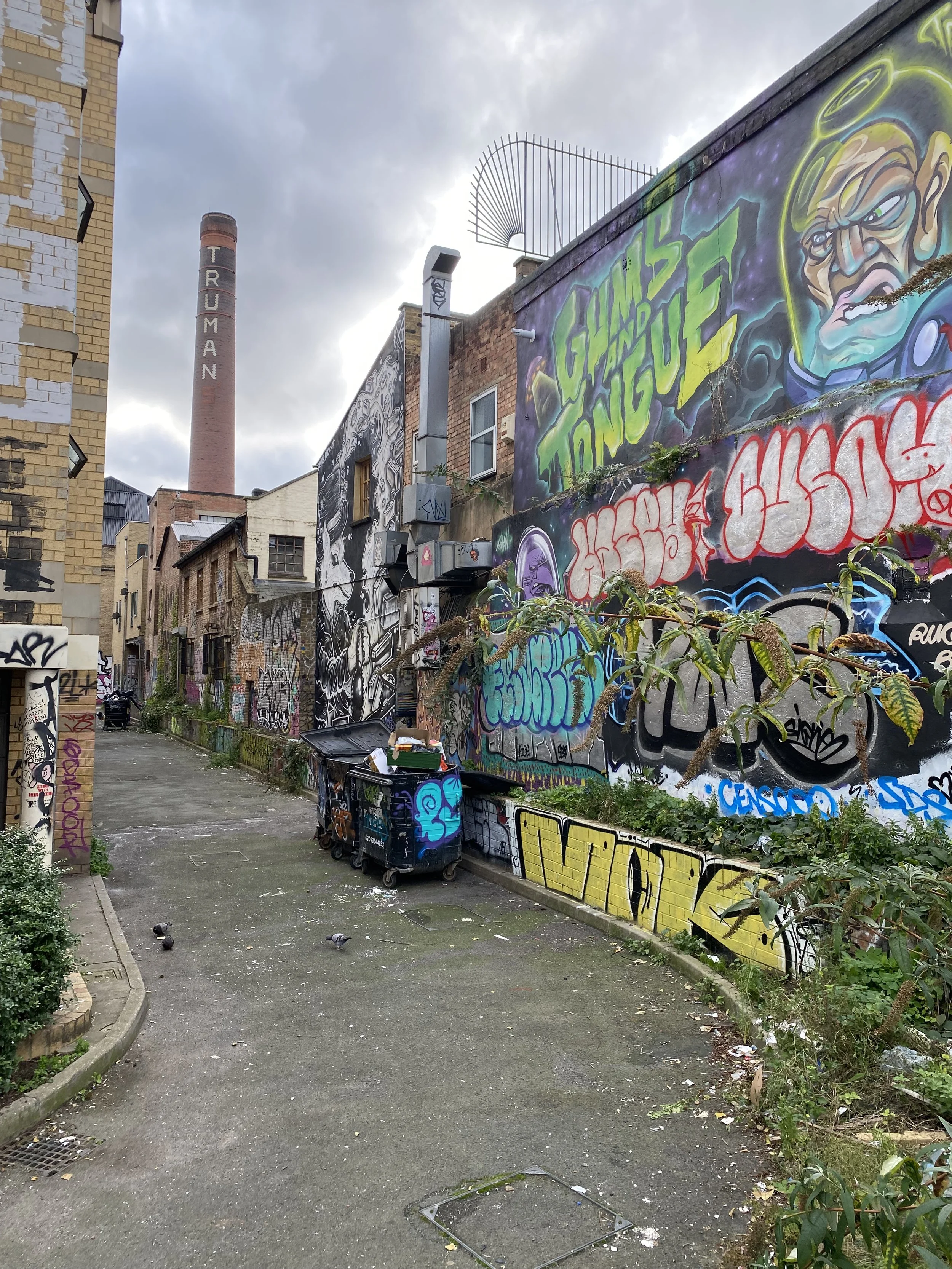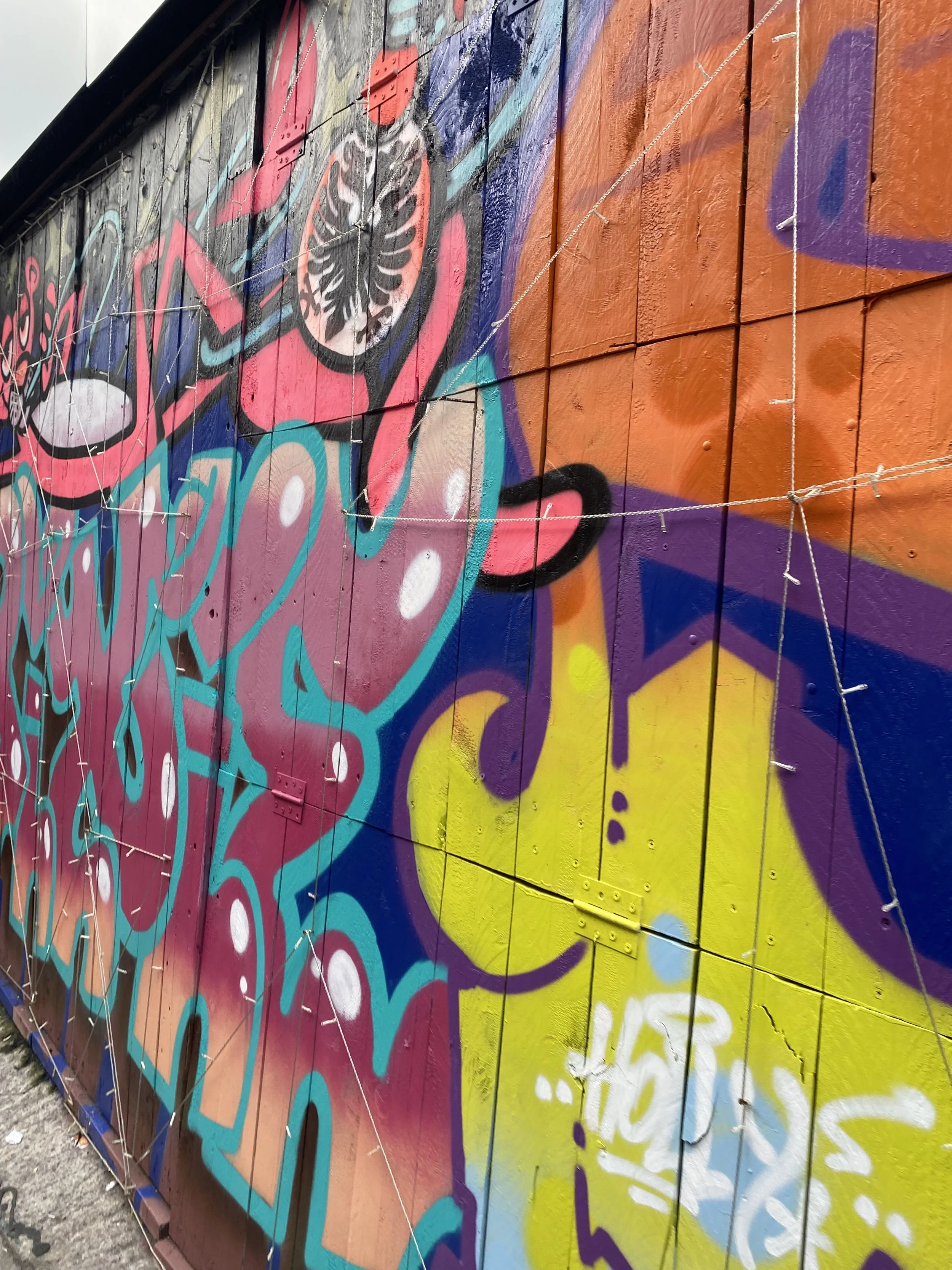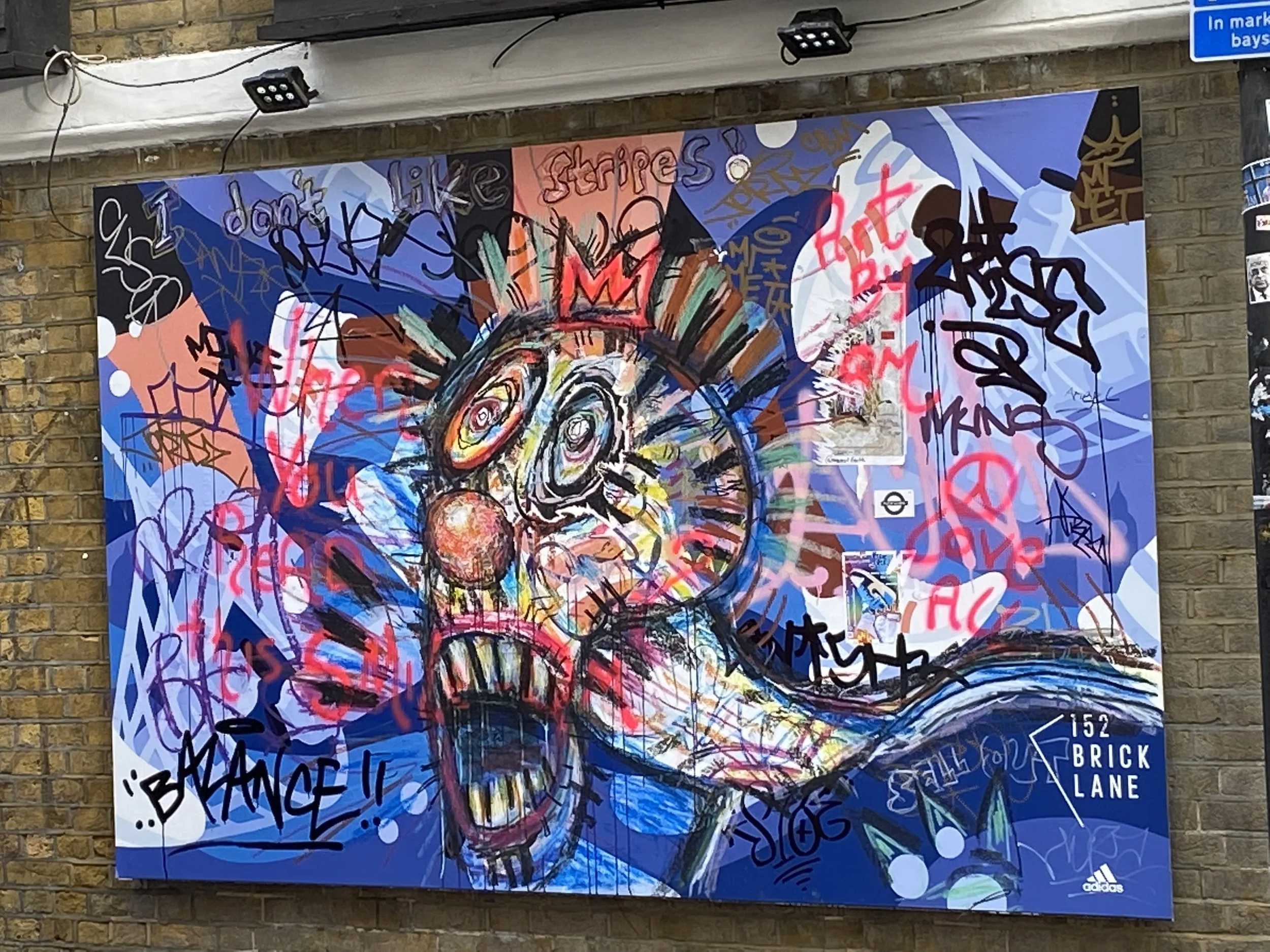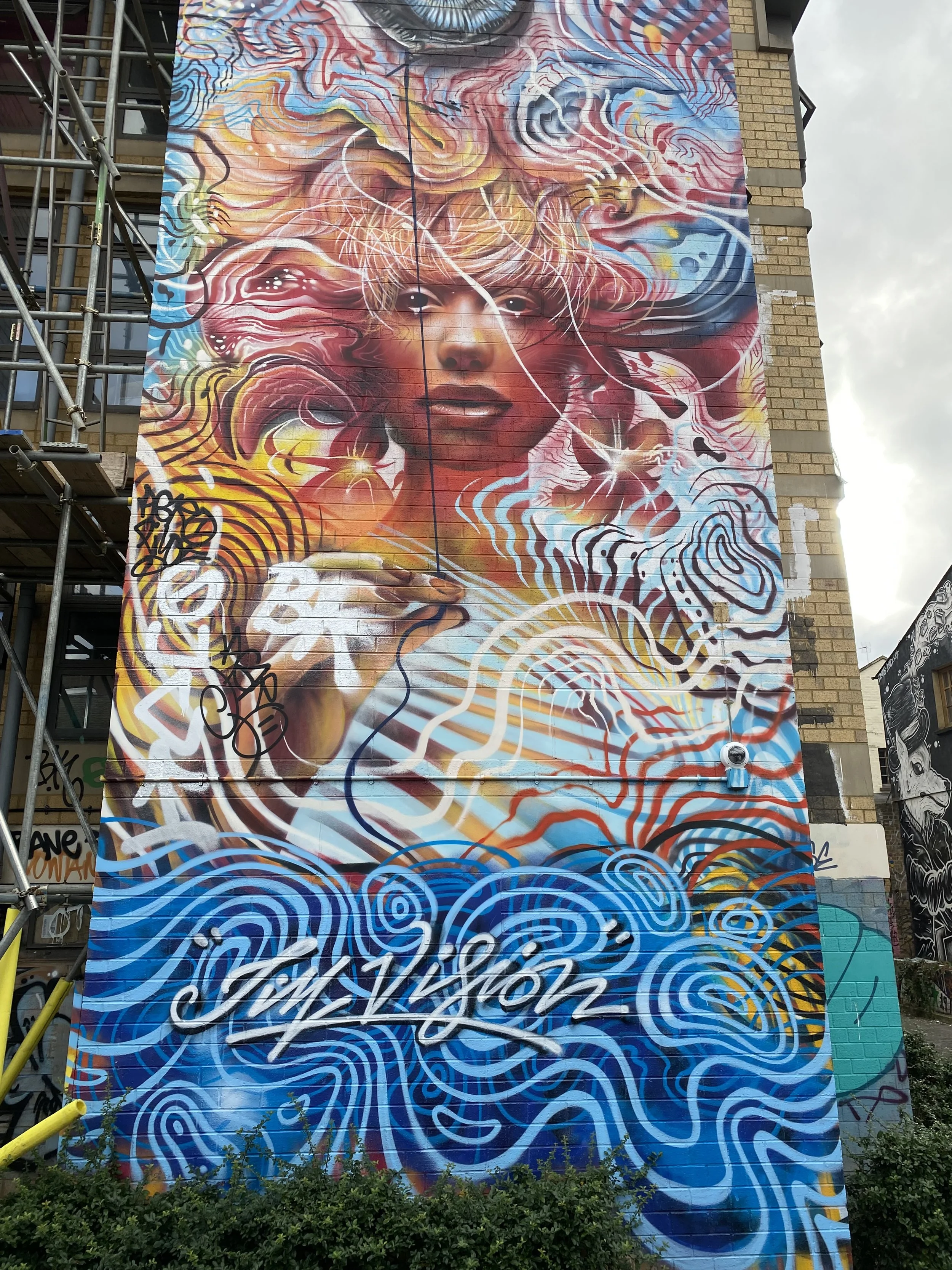 I love graffiti and I’m not really sure what it is that pulls me in, be it the colour, the vastness and there size of it or simply the clean graphic and repeat in pattern. It’s not always that way, sometimes it’s layered and old, peeling away histories and stories of what was before. Walking around London E1, Brick Lane and Shoreditch, with my daughter and her boyfriend. On her 14th birthday I took photos of her with graffiti that became the the inspiration for my #LibertyOpenCall winning painting. Now three years on she’s taking the photo’s, portraits. Except I can’t help myself either - I’m not just going to hang around. I feel that same energy of capturing a moment, back in the day I was traveling worldwide. I constantly see frozen moments captured in time, compositions and interactions. This time I let it pass, she has the camera, I have the phone. Instead I stick with the wall and enjoy what East London has to offer. My favourite moment walking into a park by the railway tracks, surrounded wall to wall with tags and in front a boy of 10 plays his drums out on the grass.