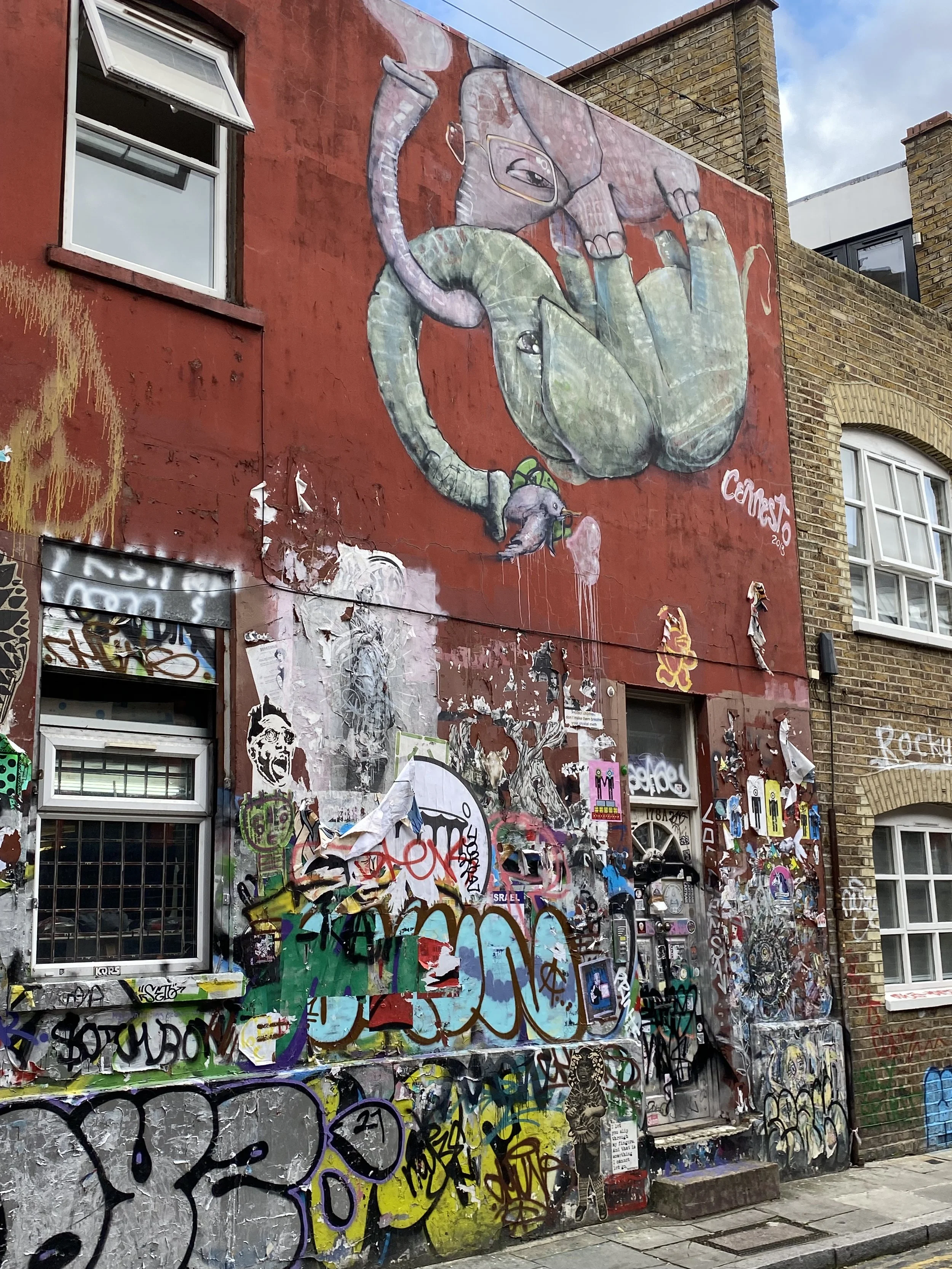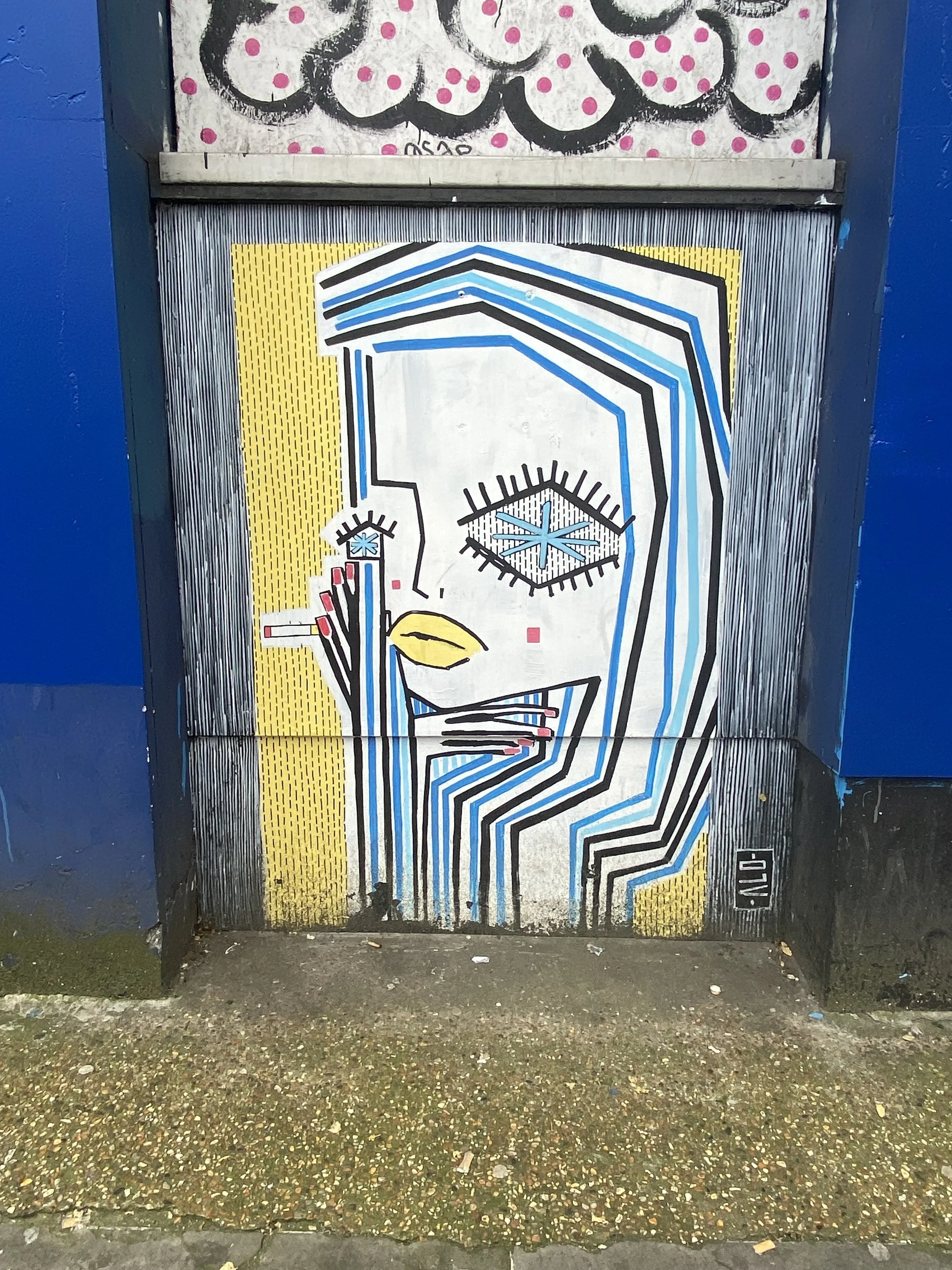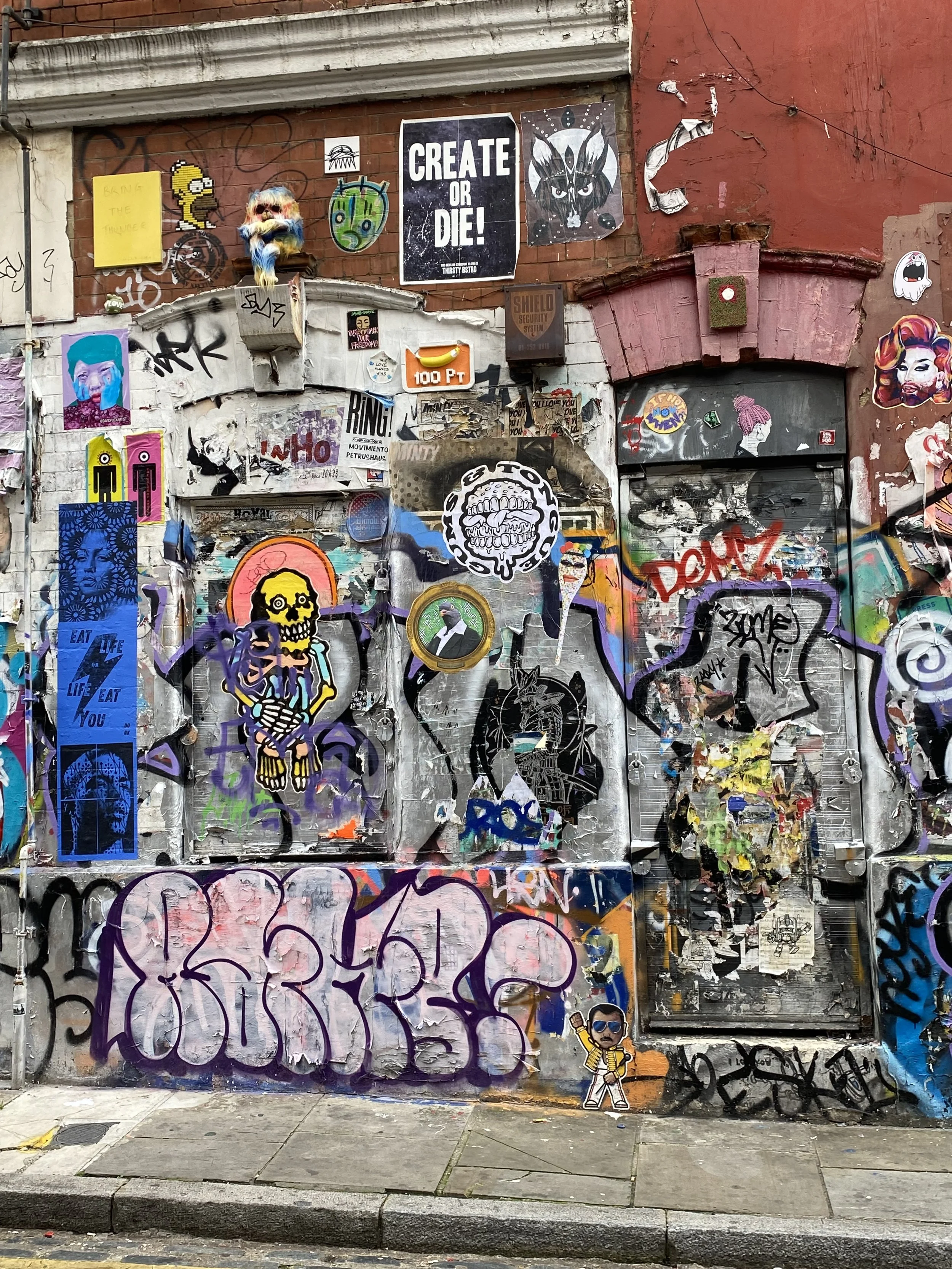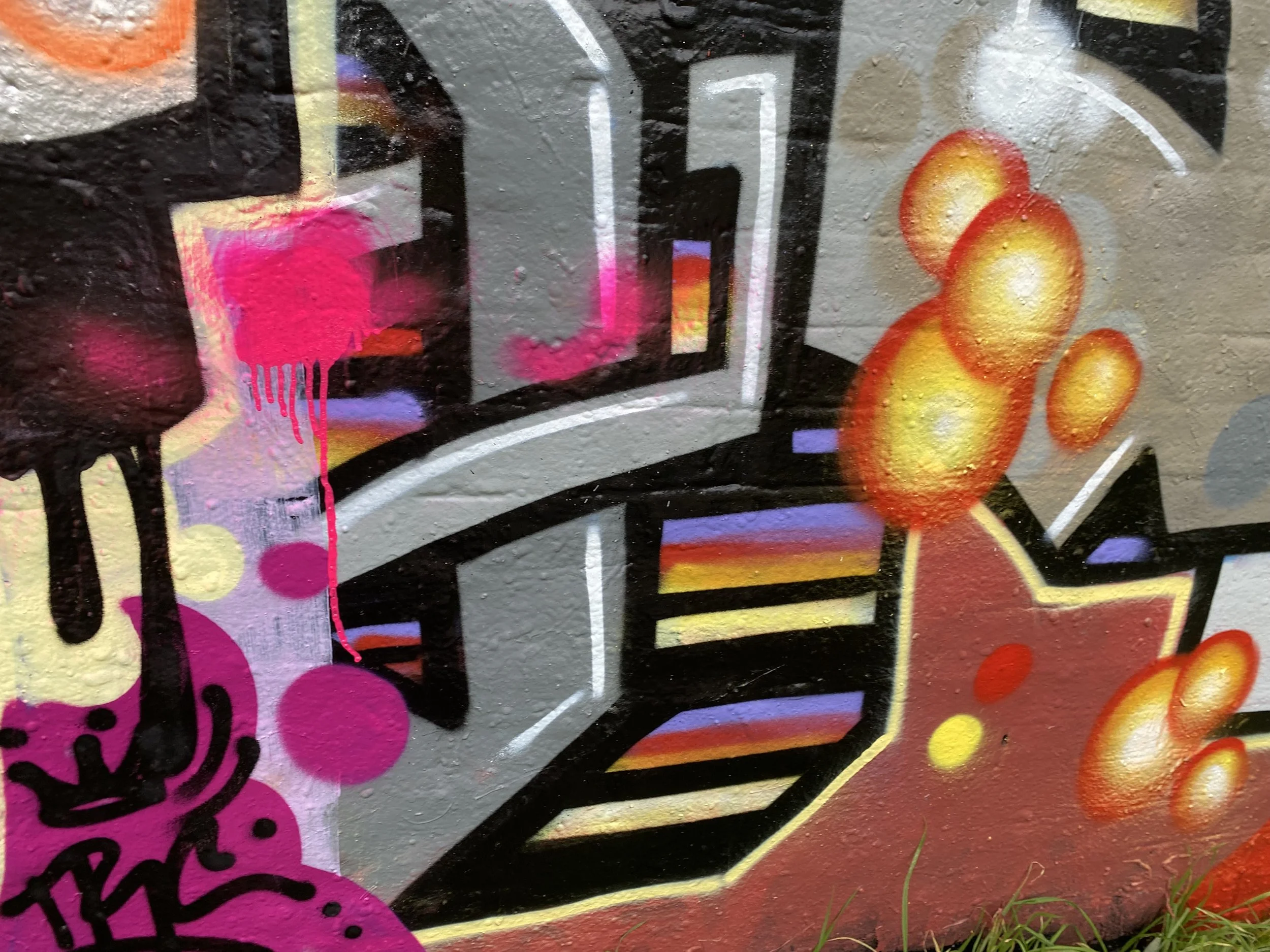 I love graffiti and I’m not really sure what it is that pulls me in, be it the colour, the vastness and there size of it or simply the clean graphic and repeat in pattern. It’s not always that way, sometimes it’s layered and old, peeling away histories and stories of what was before. Walking around London E1, Brick Lane and Shoreditch, with my daughter and her boyfriend. On her 14th birthday I took photos of her with graffiti that became the the inspiration for my #LibertyOpenCall winning painting. Now three years on she’s taking the photo’s, portraits. Except I can’t help myself either - I’m not just going to hang around. I feel that same energy of capturing a moment, back in the day I was traveling worldwide. I constantly see frozen moments captured in time, compositions and interactions. This time I let it pass, she has the camera, I have the phone. Instead I stick with the wall and enjoy what East London has to offer. My favourite moment walking into a park by the railway tracks, surrounded wall to wall with tags and in front a boy of 10 plays his drums out on the grass.