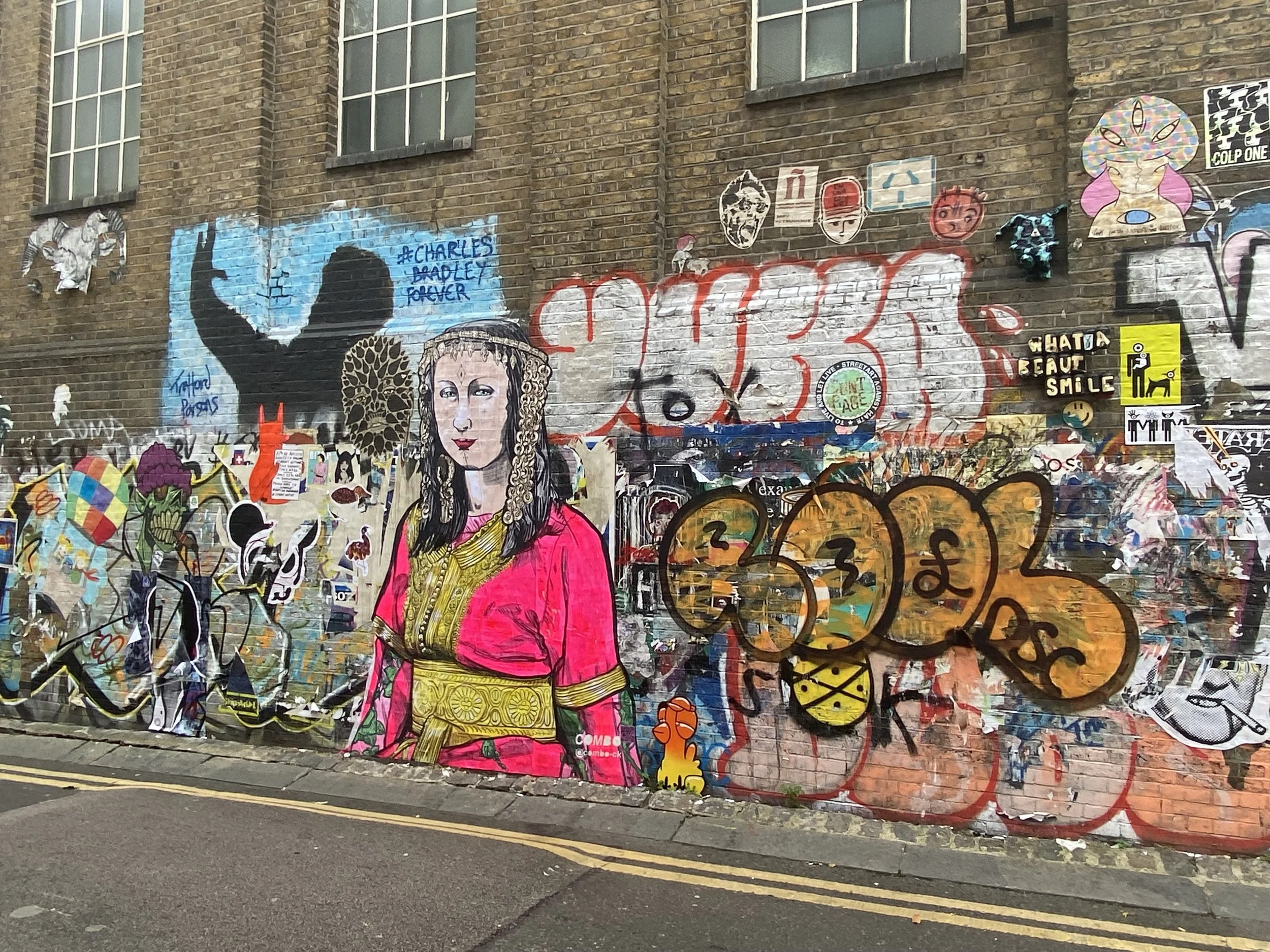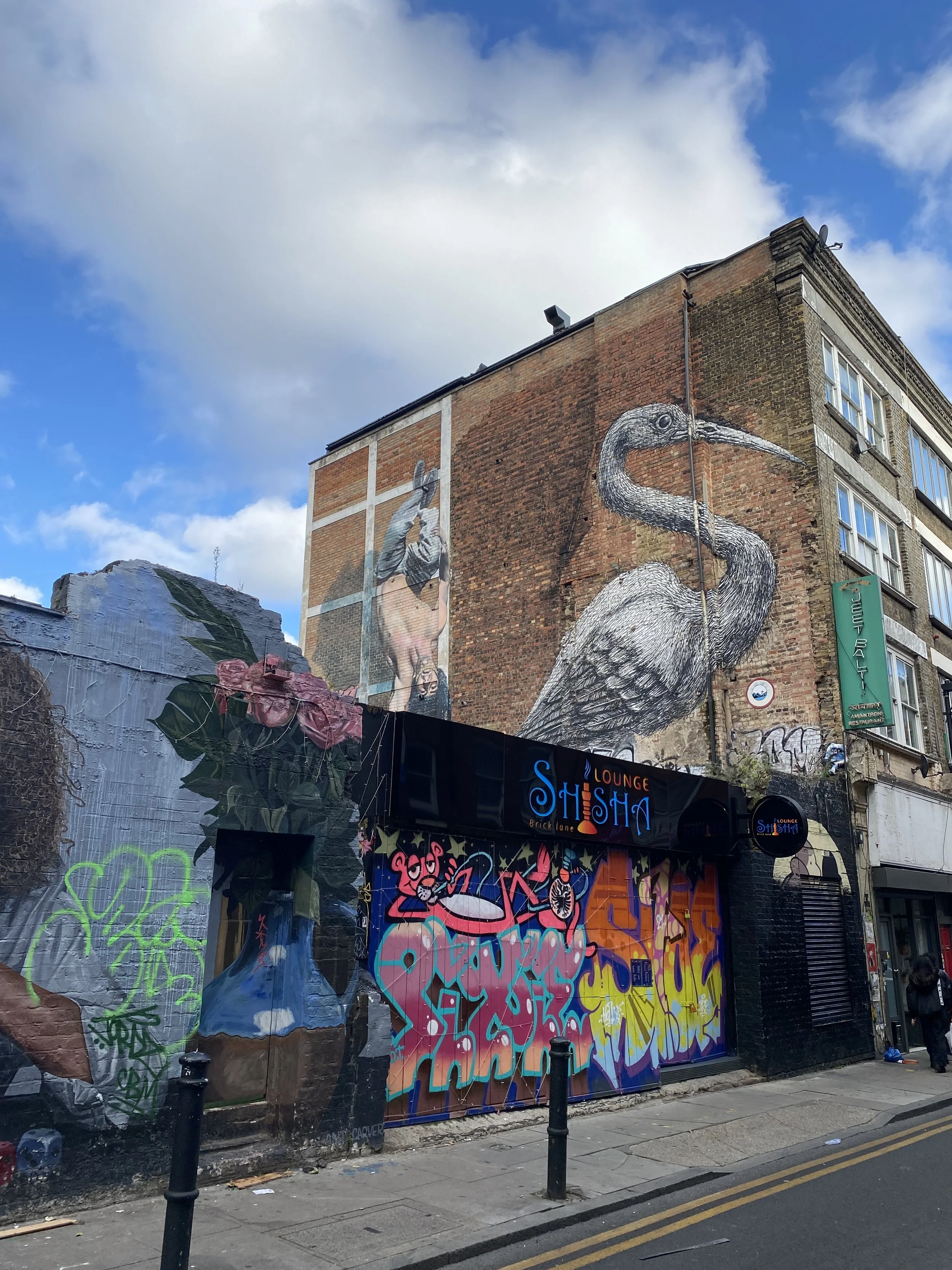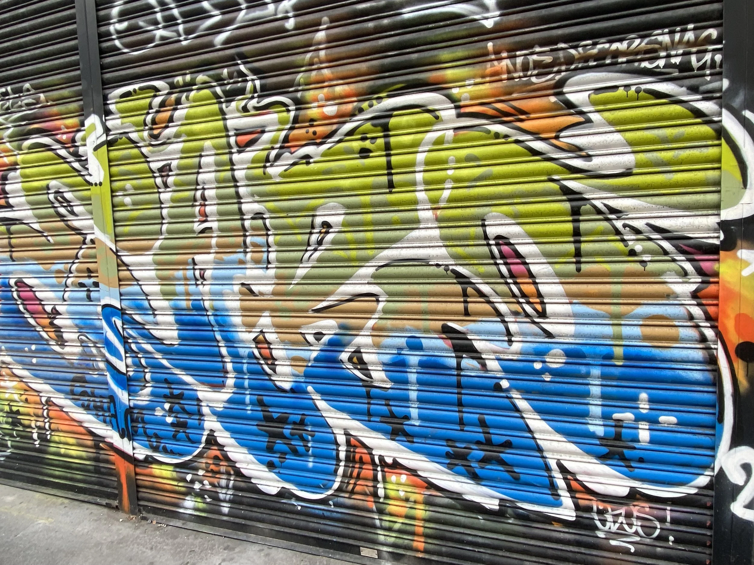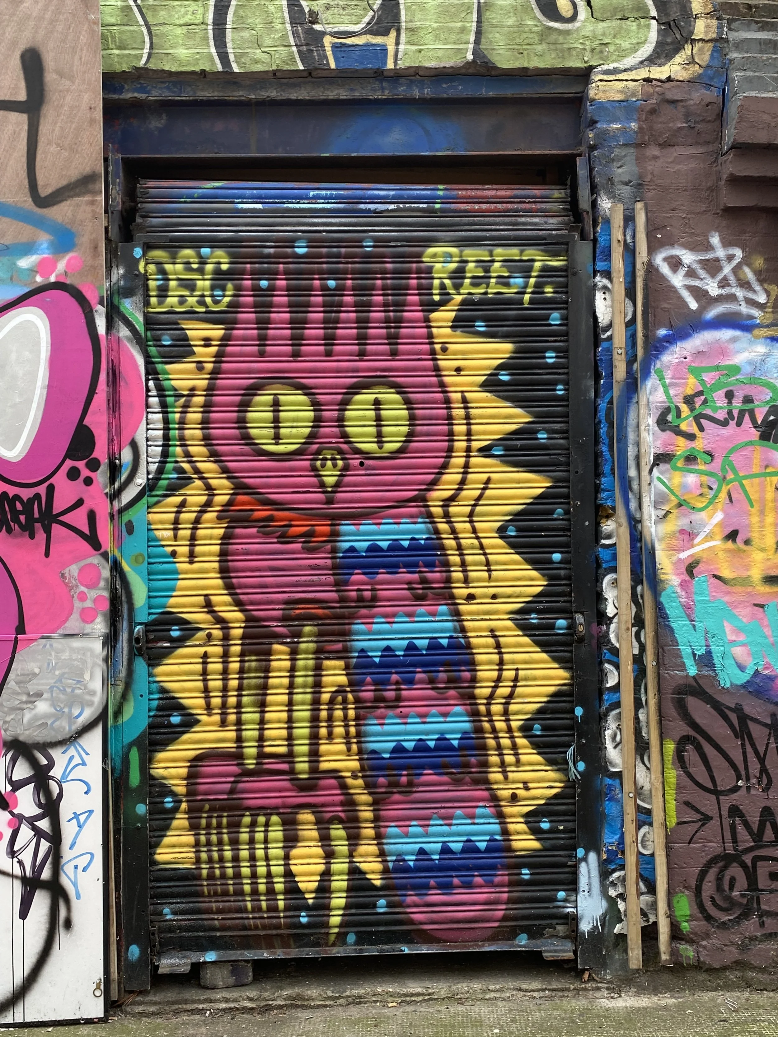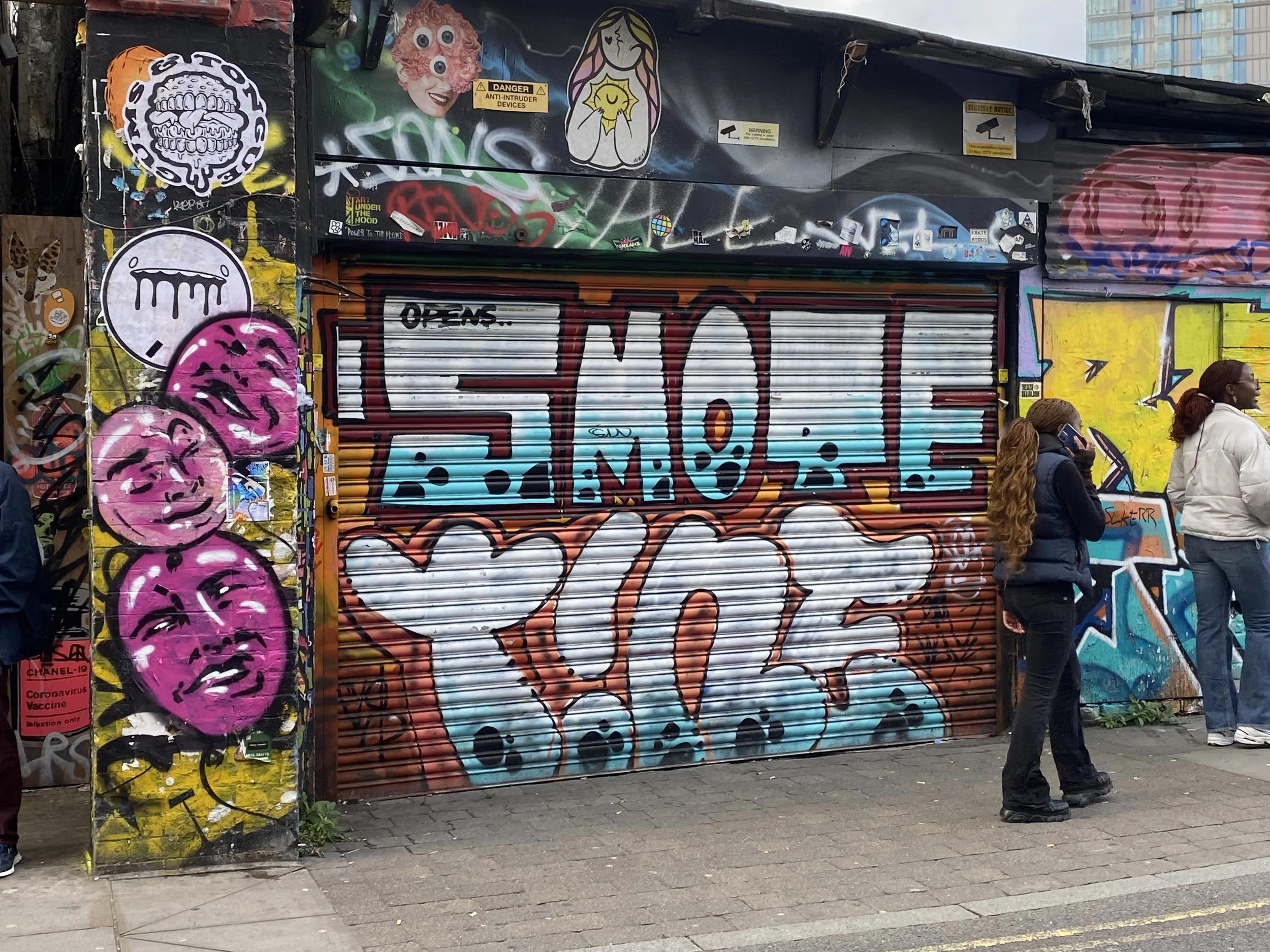 I love graffiti and I’m not really sure what it is that pulls me in, be it the colour, the vastness and there size of it or simply the clean graphic and repeat in pattern. It’s not always that way, sometimes it’s layered and old, peeling away histories and stories of what was before. Walking around London E1, Brick Lane and Shoreditch, with my daughter and her boyfriend. On her 14th birthday I took photos of her with graffiti that became the the inspiration for my #LibertyOpenCall winning painting. Now three years on she’s taking the photo’s, portraits. Except I can’t help myself either - I’m not just going to hang around. I feel that same energy of capturing a moment, back in the day I was traveling worldwide. I constantly see frozen moments captured in time, compositions and interactions. This time I let it pass, she has the camera, I have the phone. Instead I stick with the wall and enjoy what East London has to offer. My favourite moment walking into a park by the railway tracks, surrounded wall to wall with tags and in front a boy of 10 plays his drums out on the grass.