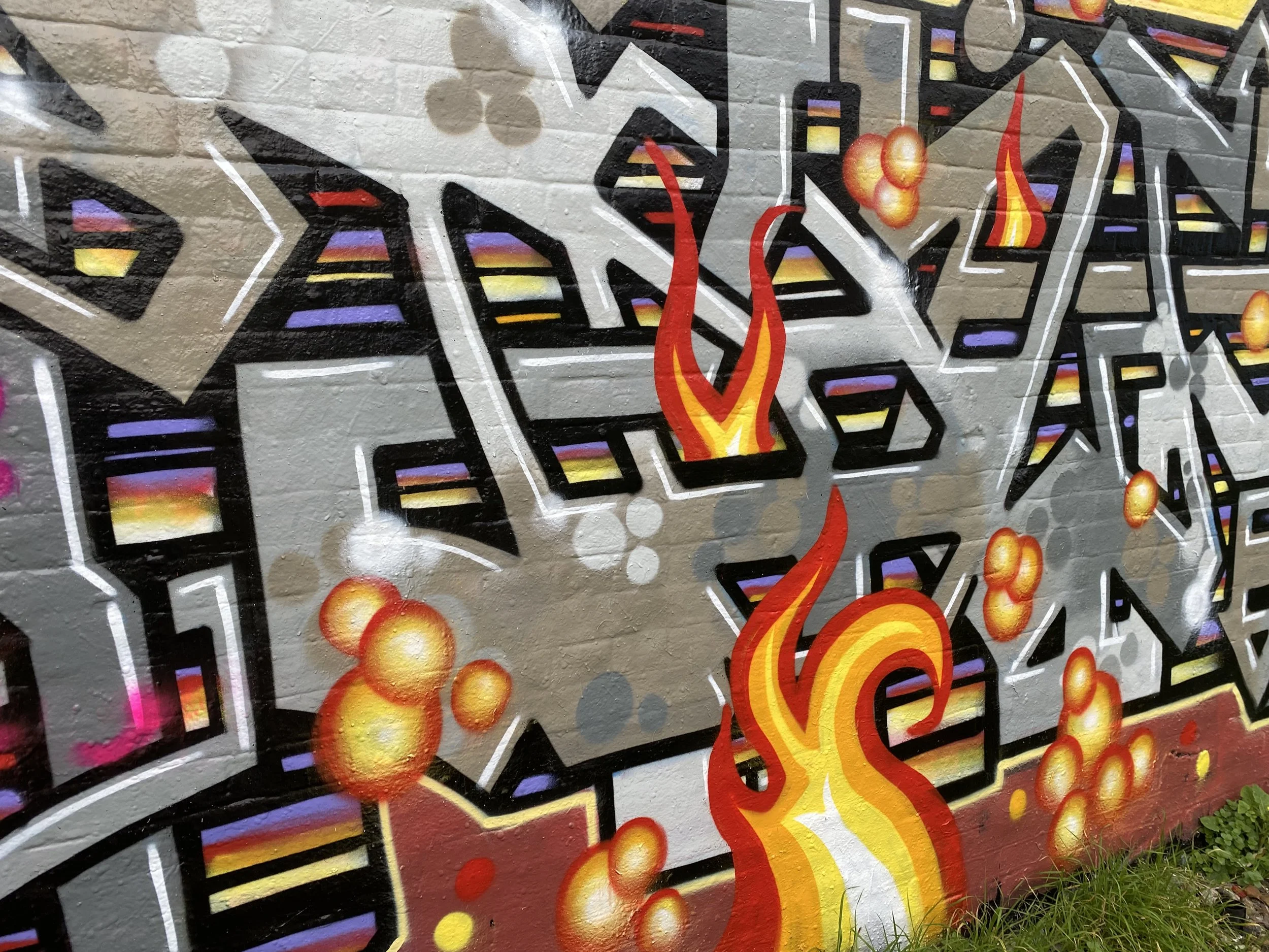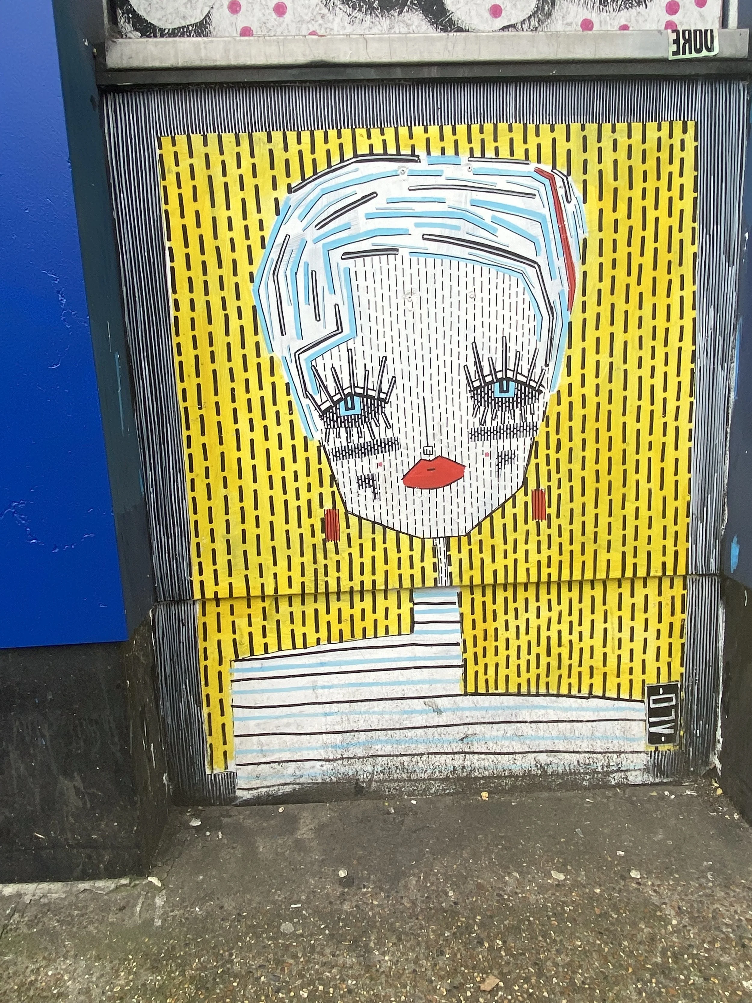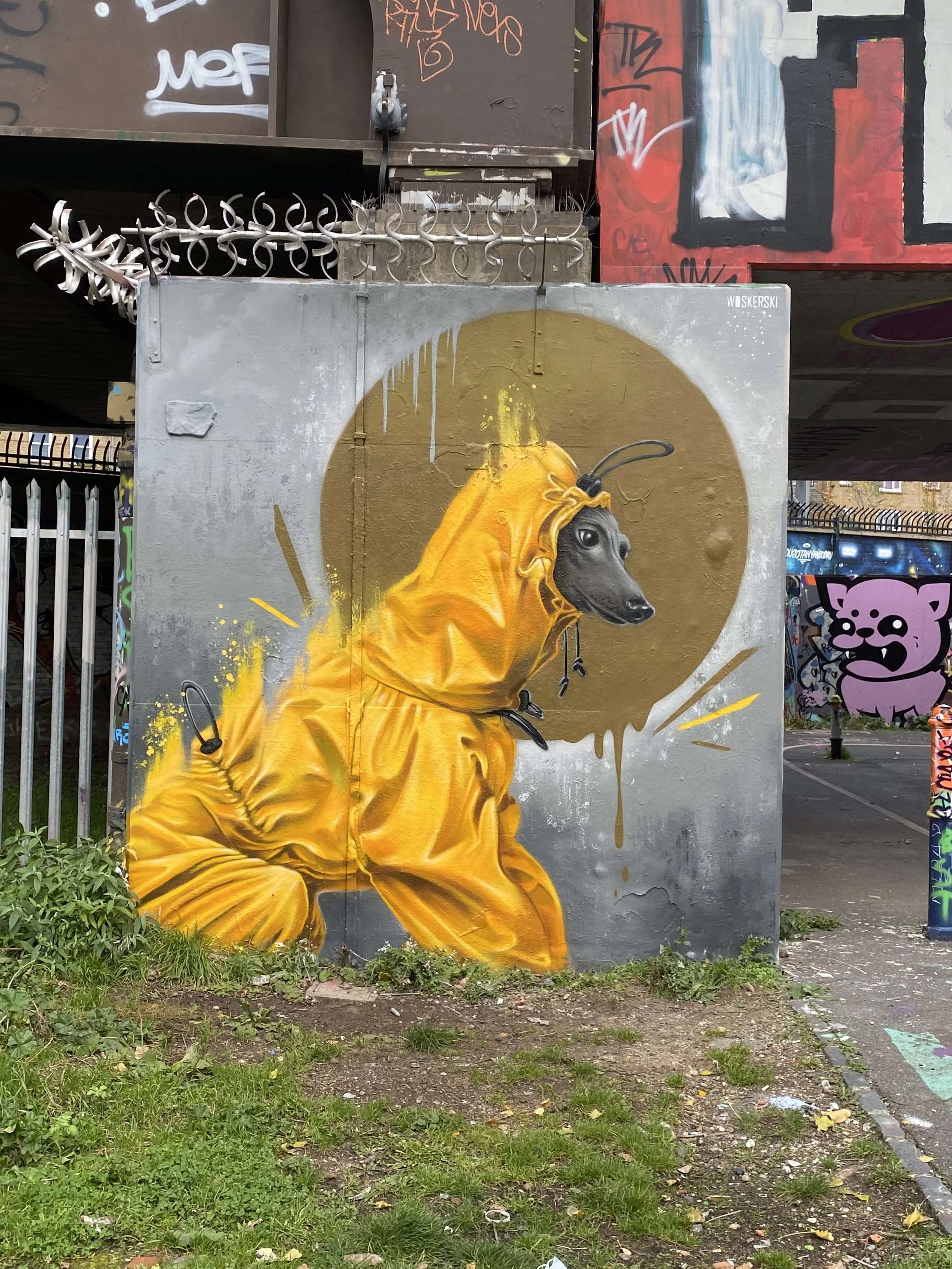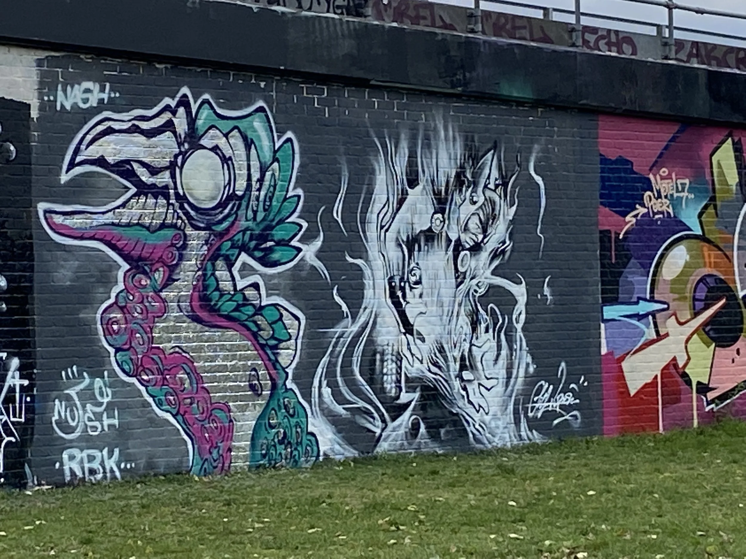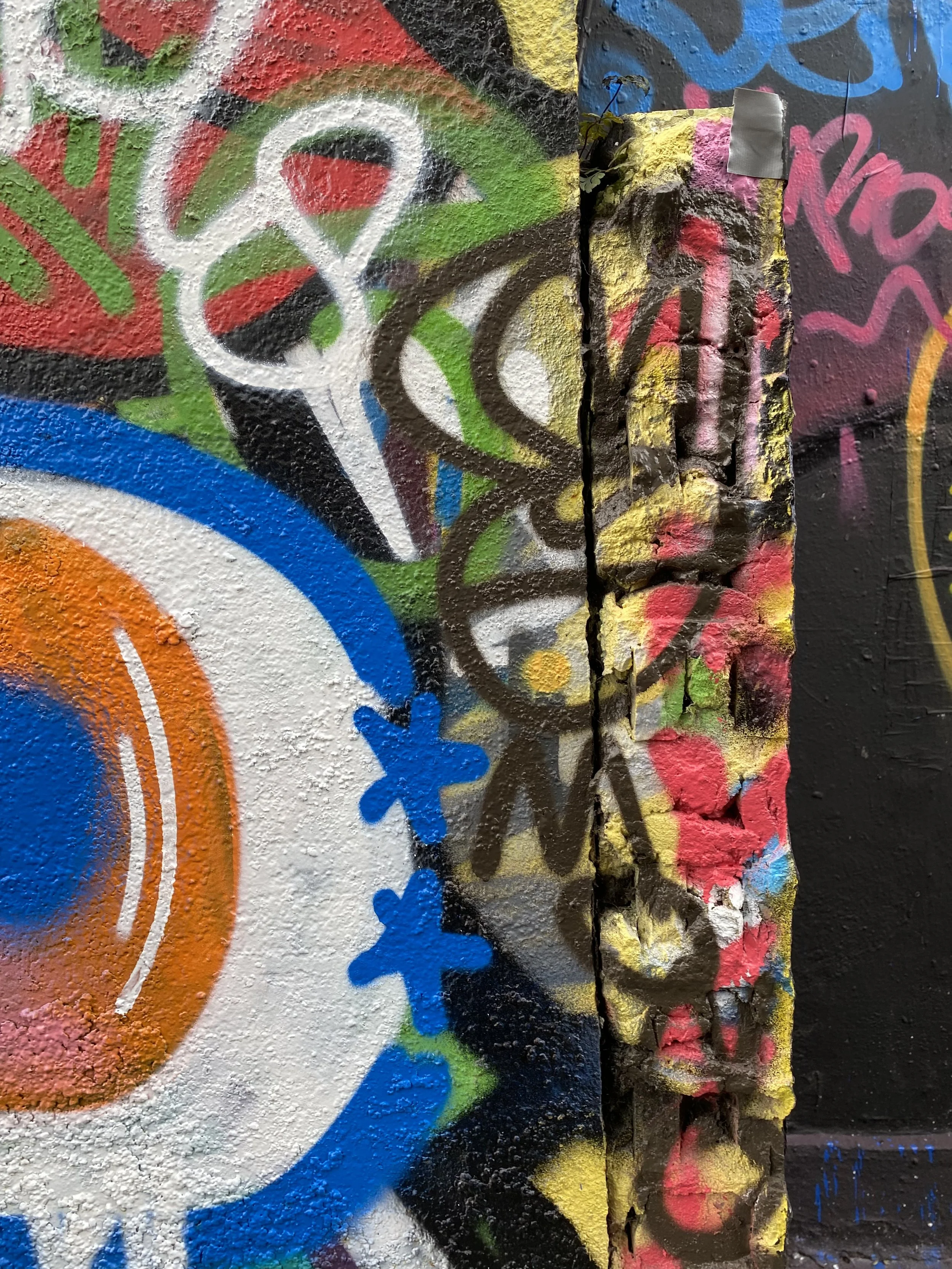 I love graffiti and I’m not really sure what it is that pulls me in, be it the colour, the vastness and there size of it or simply the clean graphic and repeat in pattern. It’s not always that way, sometimes it’s layered and old, peeling away histories and stories of what was before. Walking around London E1, Brick Lane and Shoreditch, with my daughter and her boyfriend. On her 14th birthday I took photos of her with graffiti that became the the inspiration for my #LibertyOpenCall winning painting. Now three years on she’s taking the photo’s, portraits. Except I can’t help myself either - I’m not just going to hang around. I feel that same energy of capturing a moment, back in the day I was traveling worldwide. I constantly see frozen moments captured in time, compositions and interactions. This time I let it pass, she has the camera, I have the phone. Instead I stick with the wall and enjoy what East London has to offer. My favourite moment walking into a park by the railway tracks, surrounded wall to wall with tags and in front a boy of 10 plays his drums out on the grass.