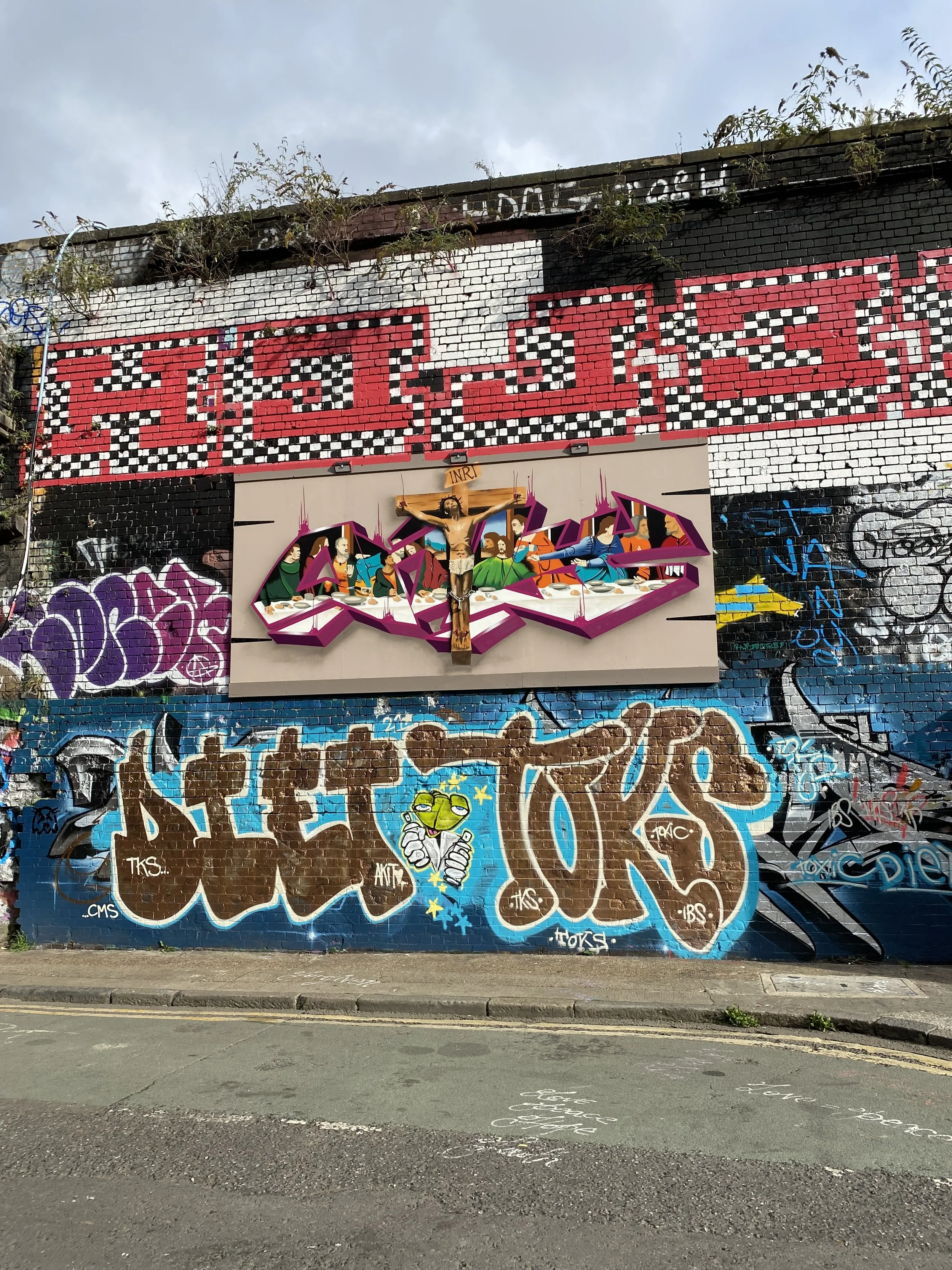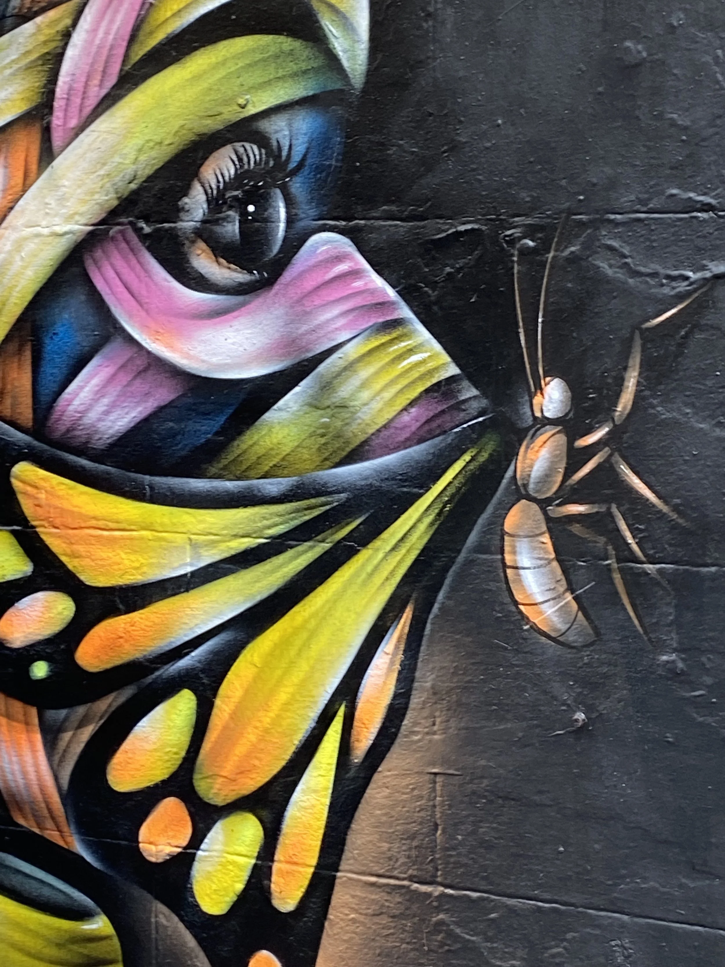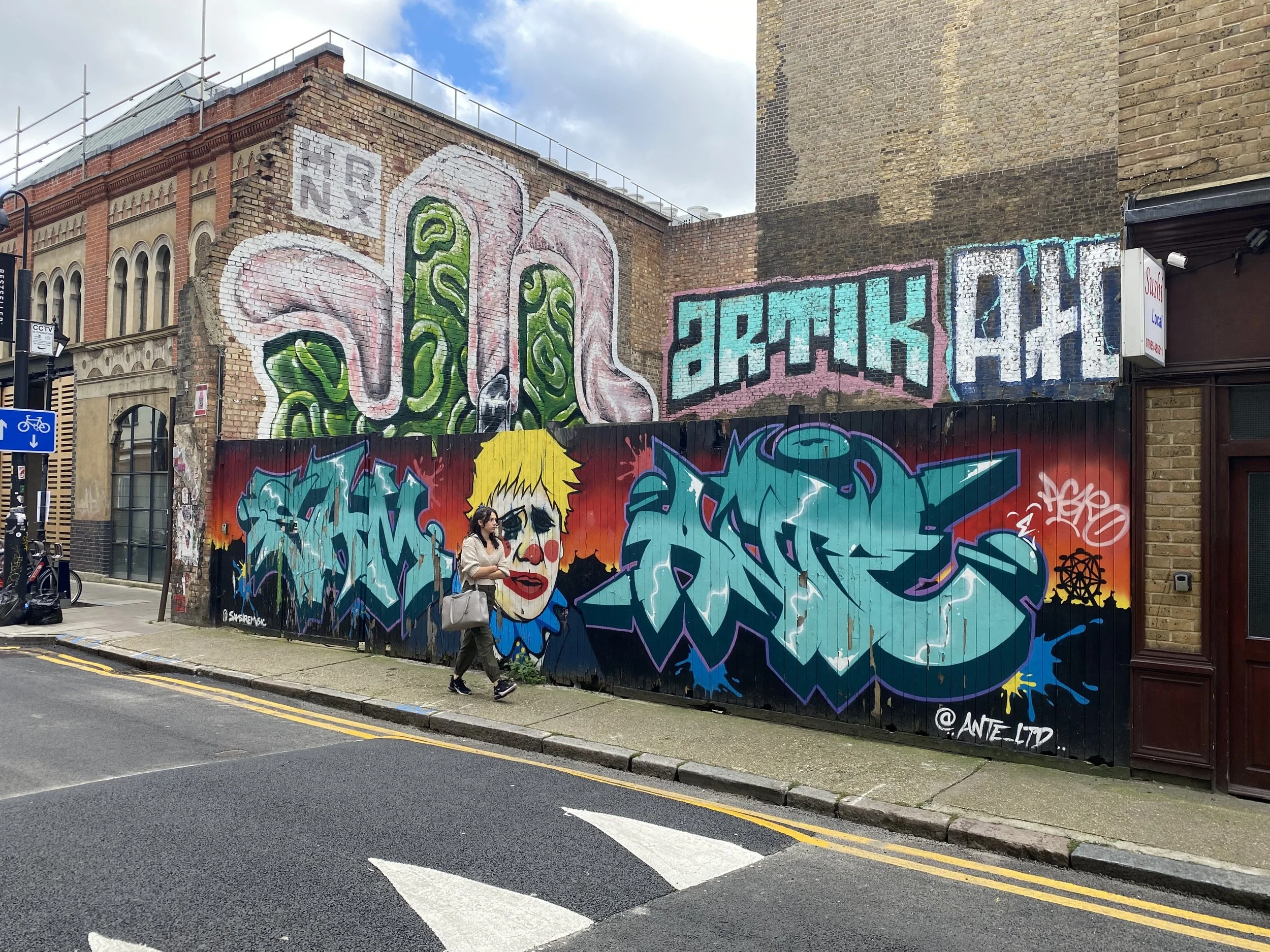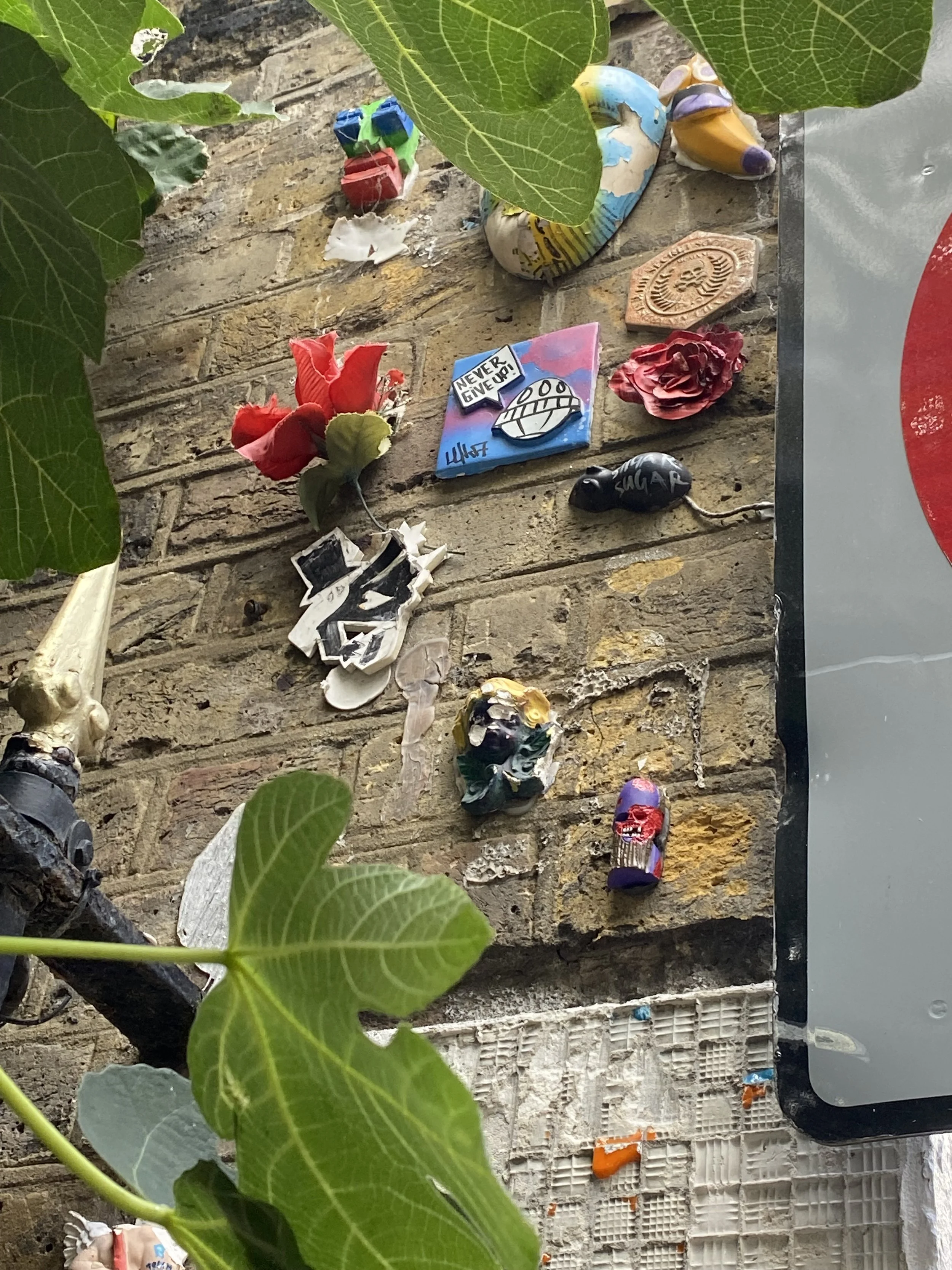 I love graffiti and I’m not really sure what it is that pulls me in, be it the colour, the vastness and there size of it or simply the clean graphic and repeat in pattern. It’s not always that way, sometimes it’s layered and old, peeling away histories and stories of what was before. Walking around London E1, Brick Lane and Shoreditch, with my daughter and her boyfriend. On her 14th birthday I took photos of her with graffiti that became the the inspiration for my #LibertyOpenCall winning painting. Now three years on she’s taking the photo’s, portraits. Except I can’t help myself either - I’m not just going to hang around. I feel that same energy of capturing a moment, back in the day I was traveling worldwide. I constantly see frozen moments captured in time, compositions and interactions. This time I let it pass, she has the camera, I have the phone. Instead I stick with the wall and enjoy what East London has to offer. My favourite moment walking into a park by the railway tracks, surrounded wall to wall with tags and in front a boy of 10 plays his drums out on the grass.
