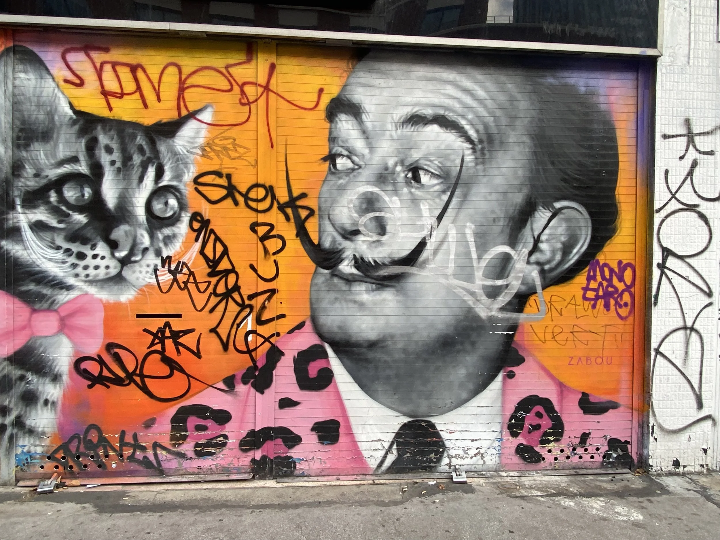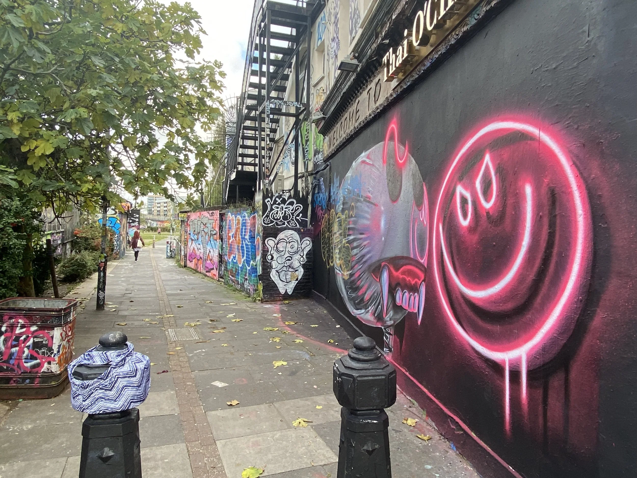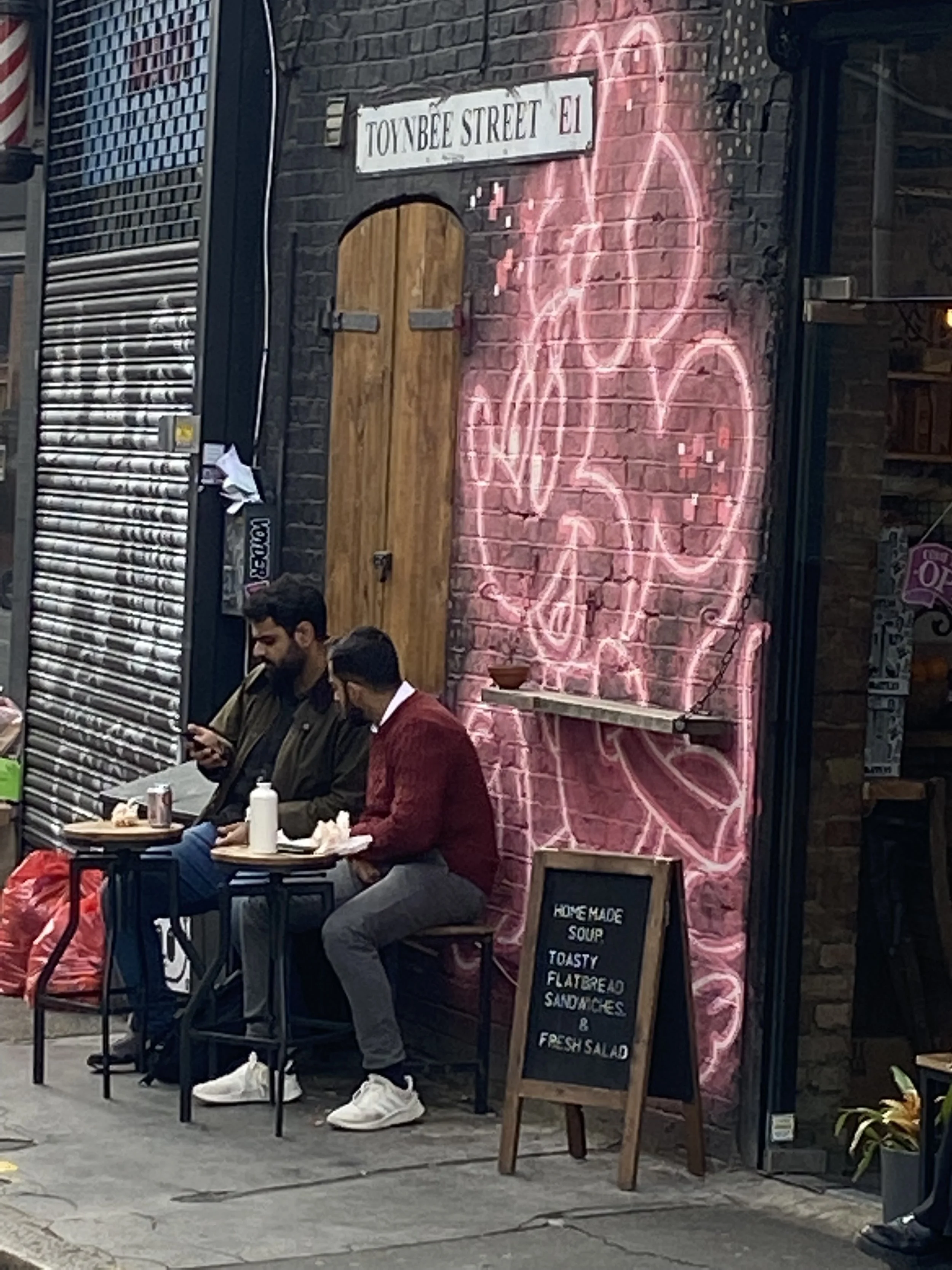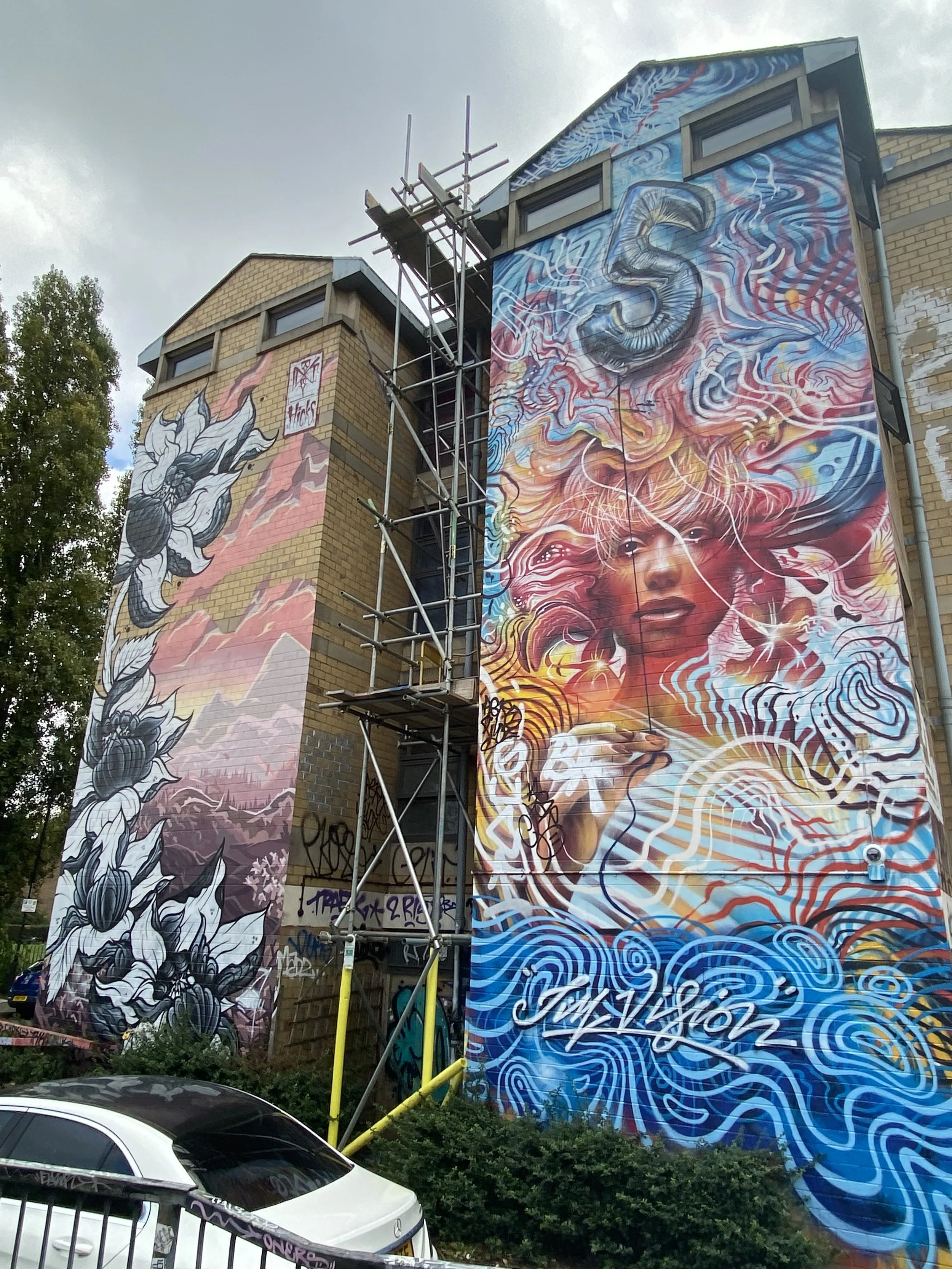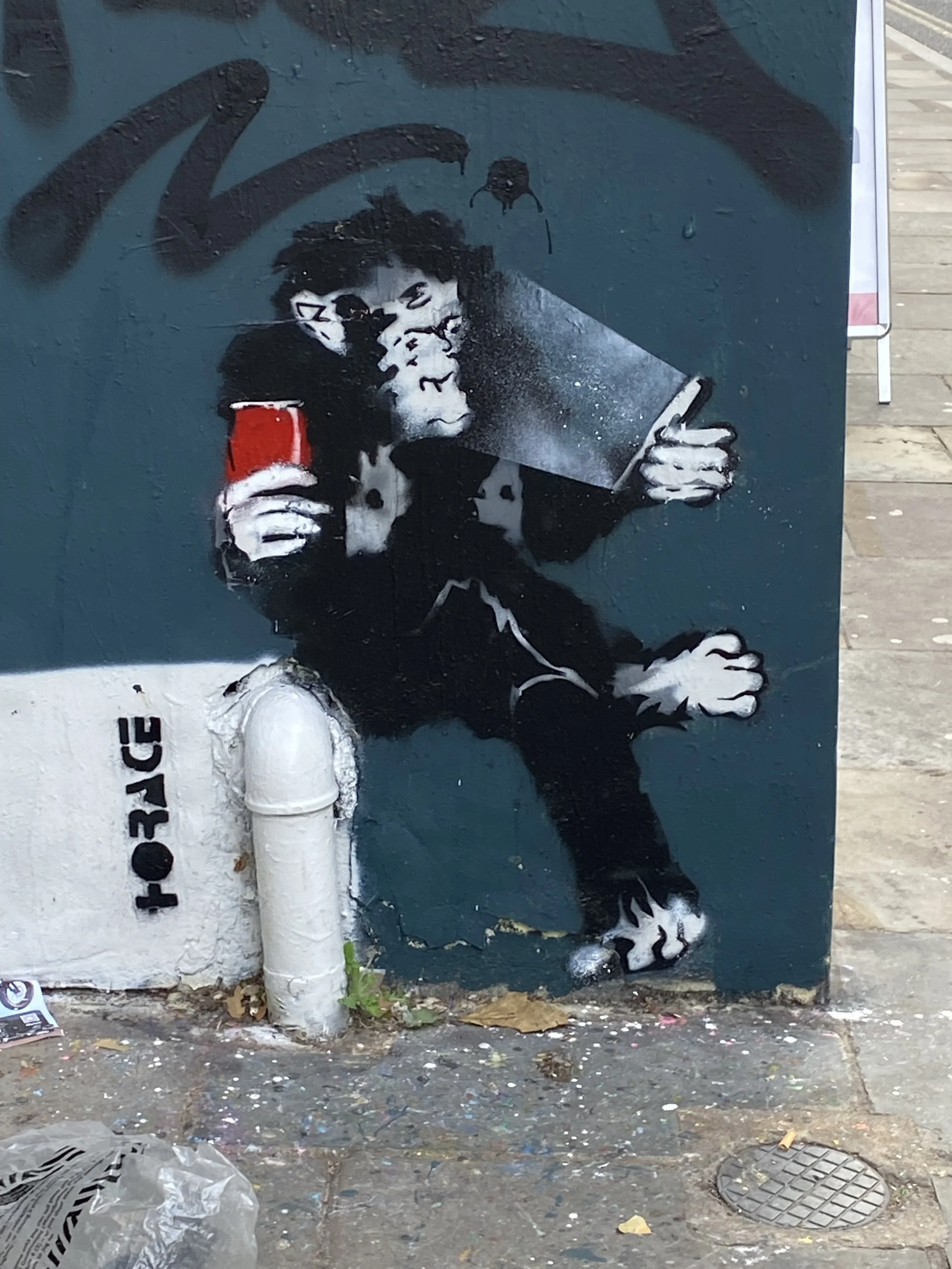 I love graffiti and I’m not really sure what it is that pulls me in, be it the colour, the vastness and there size of it or simply the clean graphic and repeat in pattern. It’s not always that way, sometimes it’s layered and old, peeling away histories and stories of what was before. Walking around London E1, Brick Lane and Shoreditch, with my daughter and her boyfriend. On her 14th birthday I took photos of her with graffiti that became the the inspiration for my #LibertyOpenCall winning painting. Now three years on she’s taking the photo’s, portraits. Except I can’t help myself either - I’m not just going to hang around. I feel that same energy of capturing a moment, back in the day I was traveling worldwide. I constantly see frozen moments captured in time, compositions and interactions. This time I let it pass, she has the camera, I have the phone. Instead I stick with the wall and enjoy what East London has to offer. My favourite moment walking into a park by the railway tracks, surrounded wall to wall with tags and in front a boy of 10 plays his drums out on the grass.