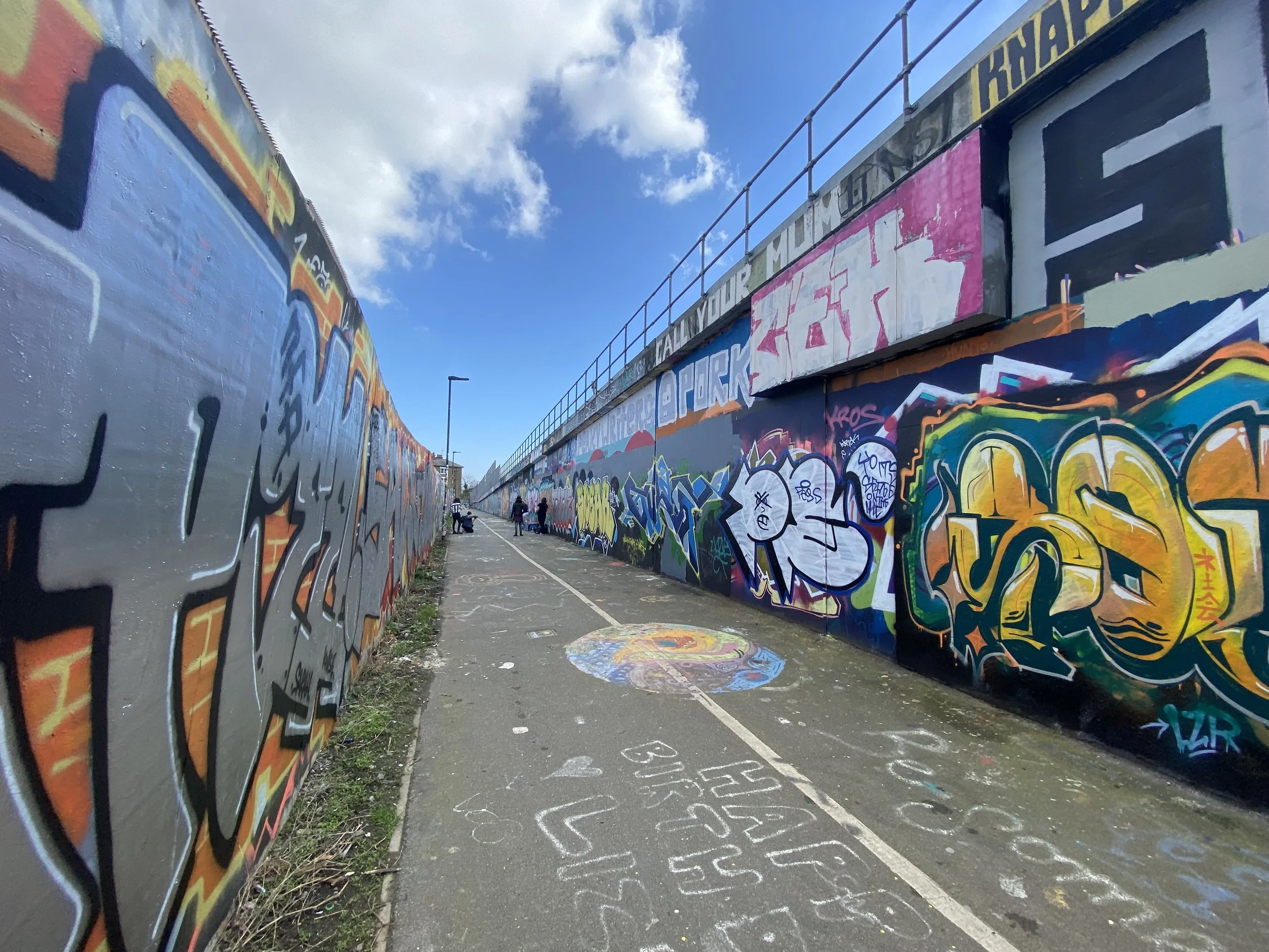 It’s been such a bad month of rain and now the last couple of days have been glorious. I’m on my way to visit The Other Art Fair at the Truman Brewery, but I can’t help but get side tracked off onto the side roads of Brick Lane as all this popping colour sucks me away. I was only here with my Daughter some what 4 months ago and I love how the walls continue to change, the environment evolves echoing the times we live in, sharing imagery and messages. The differences now are those that document, comment and stand by Ukraine. Now day 24 of the Russian invasion.