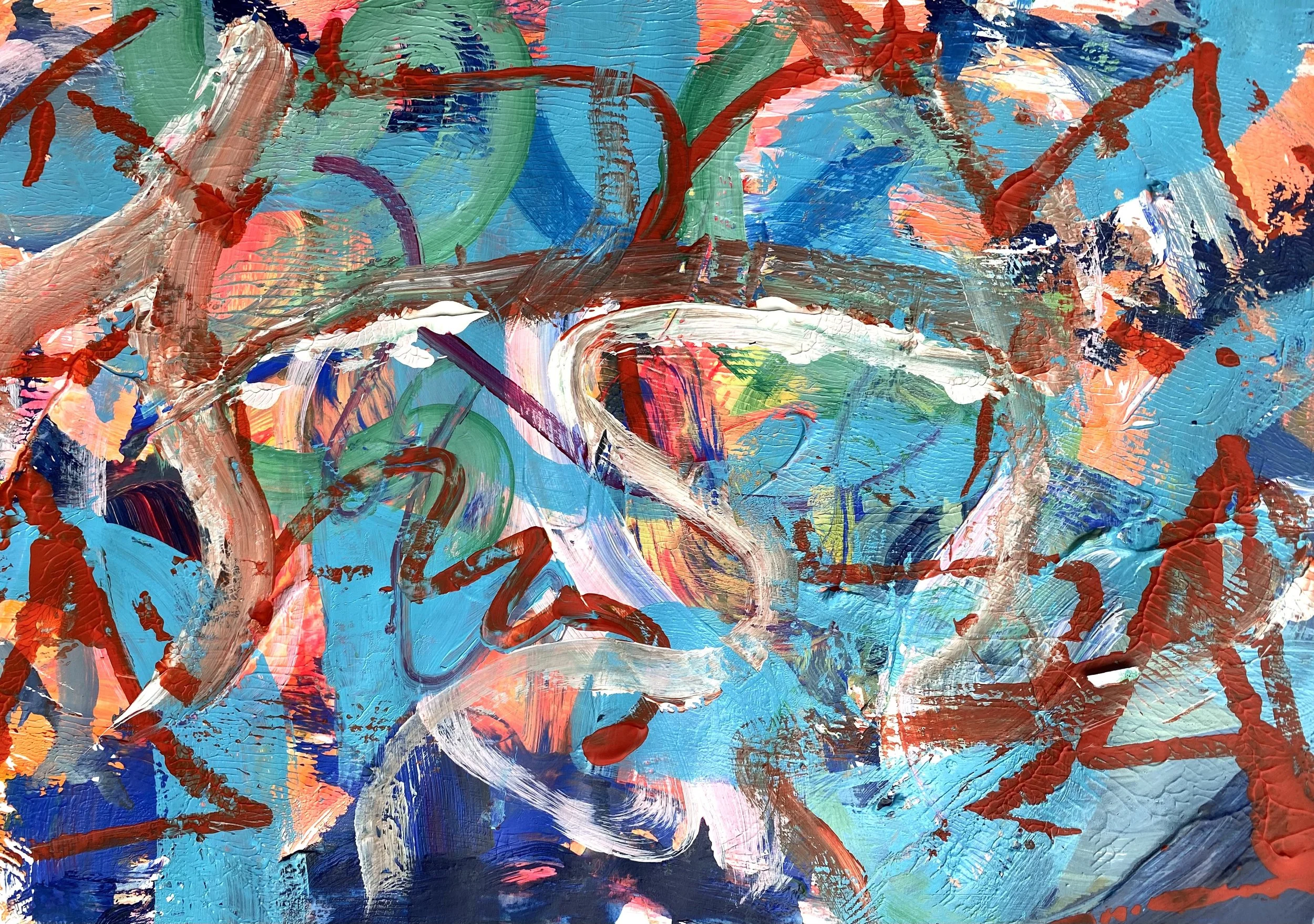 Some of what I have is true to my past, it’s ingrained deep within and yet the other half feels totally different. I kind of love that I’m not really caring, that I’m just slapping stuff about and really enjoying being in that moment of the process. Right in it, it’s raw and exciting and I’m not thinking or even aware of what is happening or what the end result might look like, because it doesn’t matter. The journey is my destination. I don’t care about the result, if it’s good, that’s a bonus, if not, I’ll move on to something else. Sometimes there is something in not being precious or attached to what you already have. In taking risks you challenge yourself and it pushes you forward into new directions and places. I never want to play safe in my art, because that’s boring. Often I like what I’ve done only to feel an urge to do something else, potentially ruining what I’ve already made - but what’s the point of ‘nice’ if it could be something unique and special. Luckily I’ve painted enough to know I have to make those risks. I’m content that I’ve made quite a few paintings I’m really happy and I’m proud of. If I make a disastrous painting and ruin what I once liked - the risk is worth it, maybe not in that painting I’m creating then, but certainly in my paintings to come.
