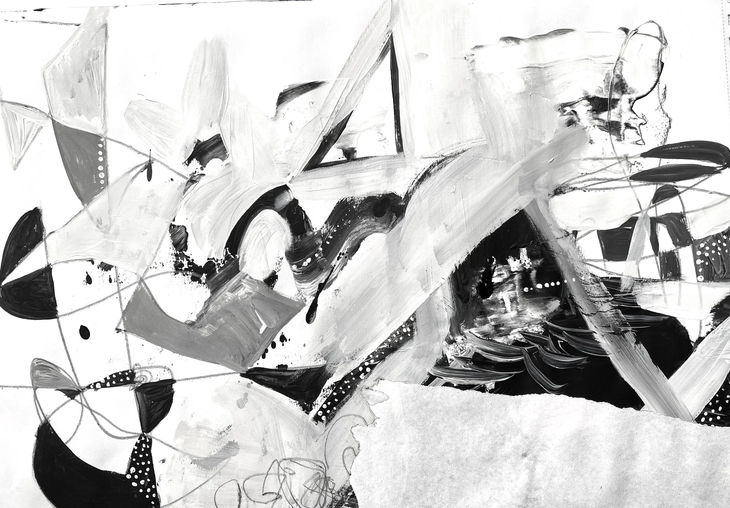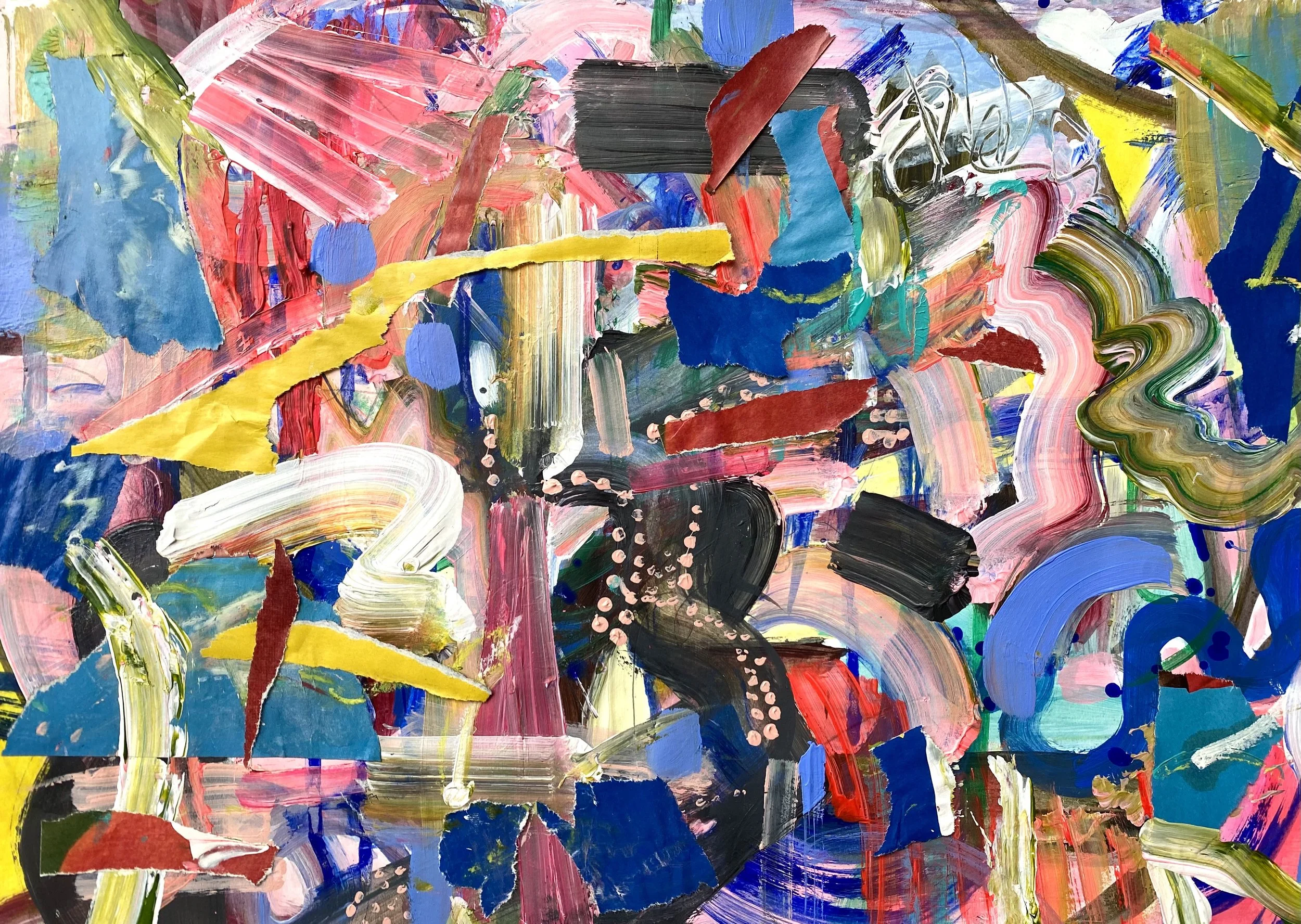 What’s interesting for me here, or different to how I usually work, is, I have focused on making shapes, familiar and made up. Shapes are added and then taken away. I constantly ask myself, what do I like, and what don’t I like. I’m also thinking of differences, in colour and texture. This blocking out and painting over feels liberating.