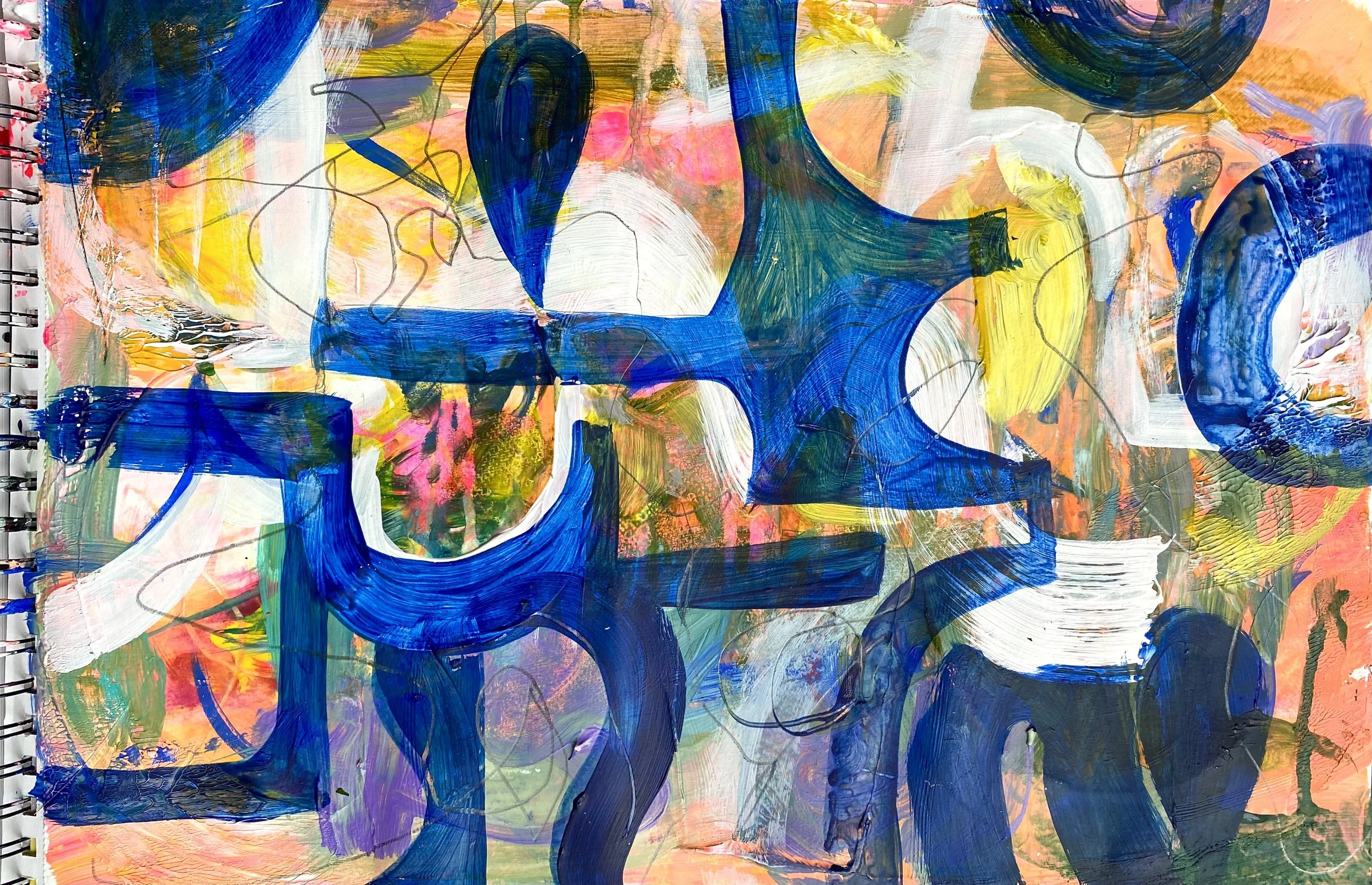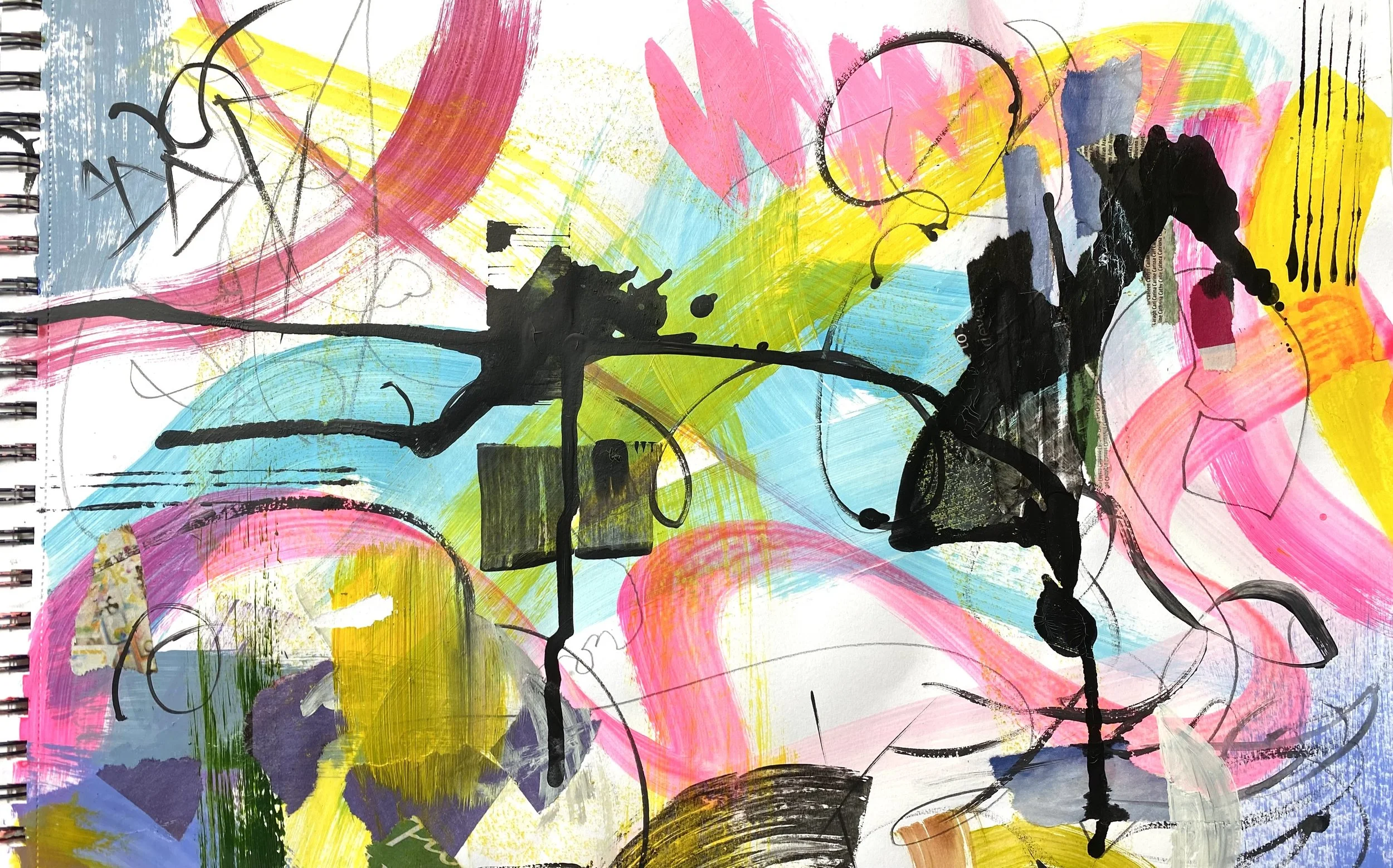 Im back on the ride, painting my heart out, taking risks, knowing it's ok to fail. Trial and error, finding my way with new possibilities. Stepping out of my comfort zone, just letting the process take me where I need to be. I’m not one for sketchbooks really, I like the idea but I’ve not done it since school. I think I have too many pre-concieved ideas about not being able to fit what I want within the space, if it is good, isn’t it better on canvas - if it’s bad - I’ve ruined a page, if you love it, it’s impossible to replicate and make as good a second time - your better off going for the real thing - straight in. and there I go, round and round in circles. Anyway, it’s nice to find a new approach and try something different.