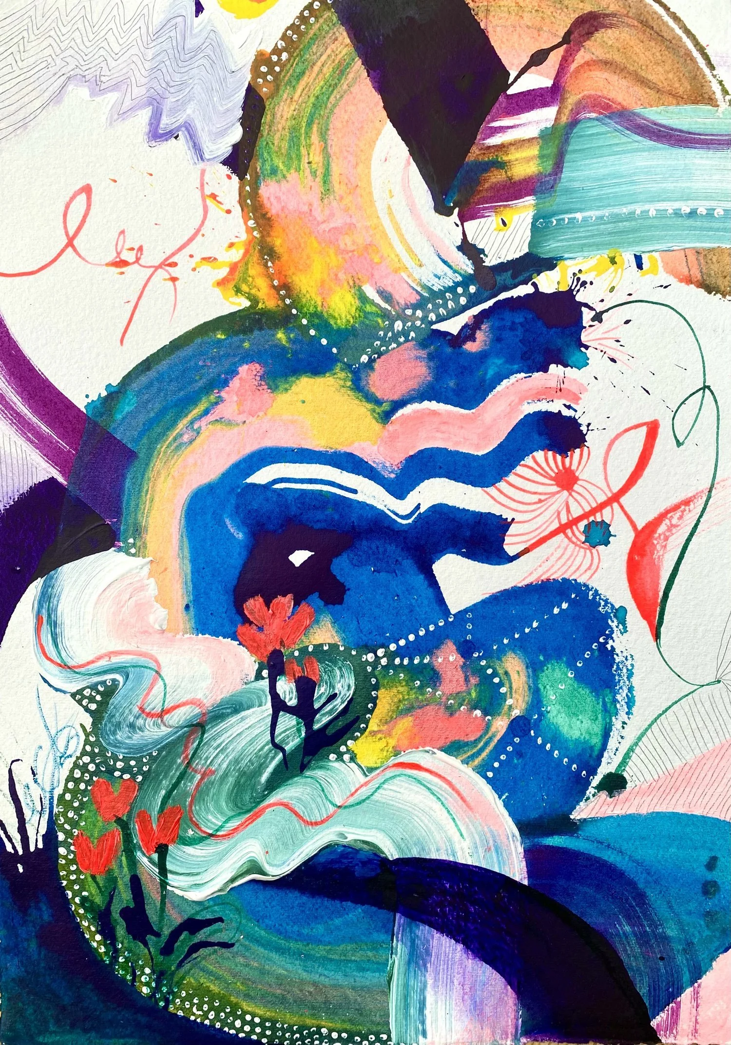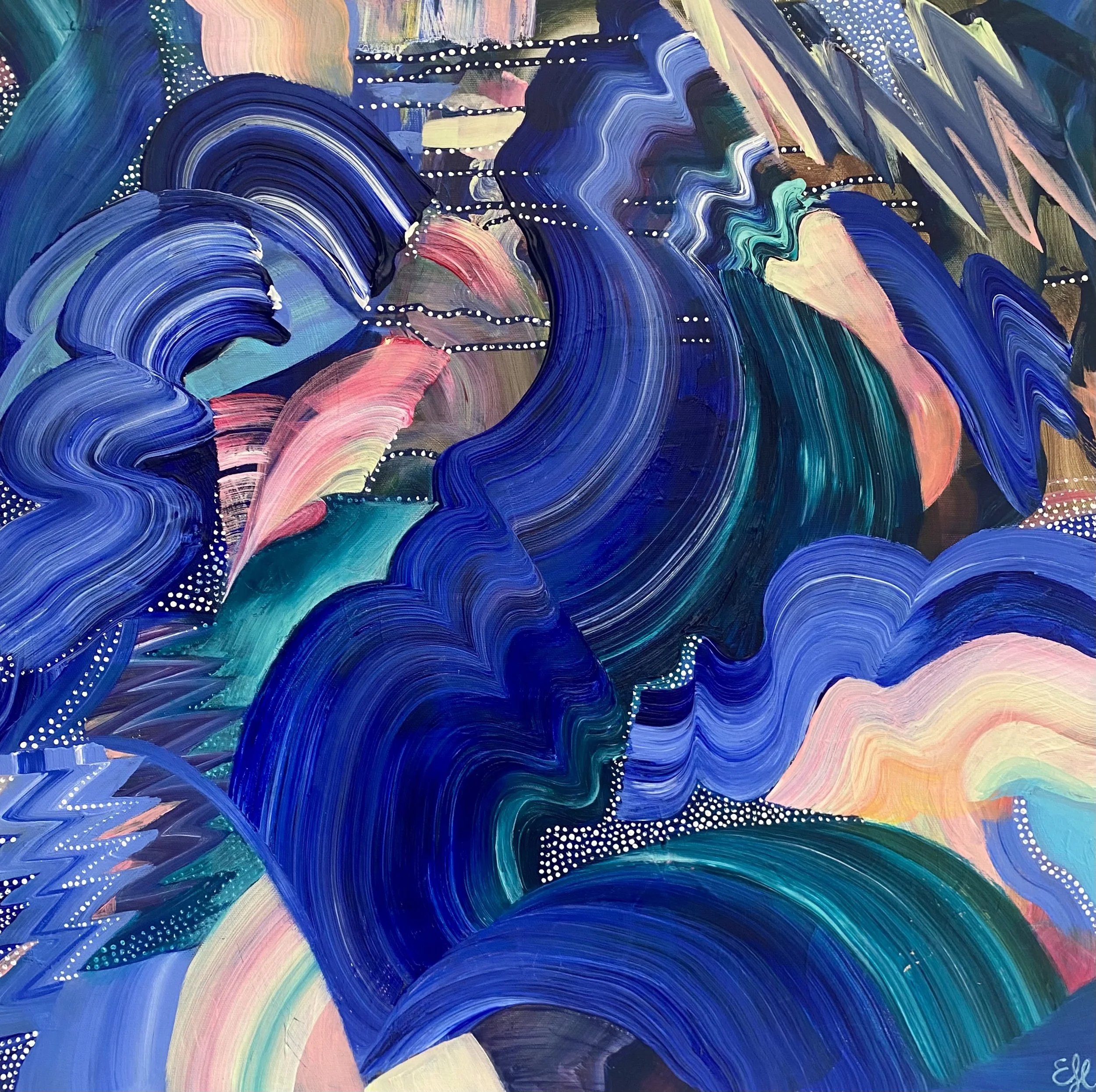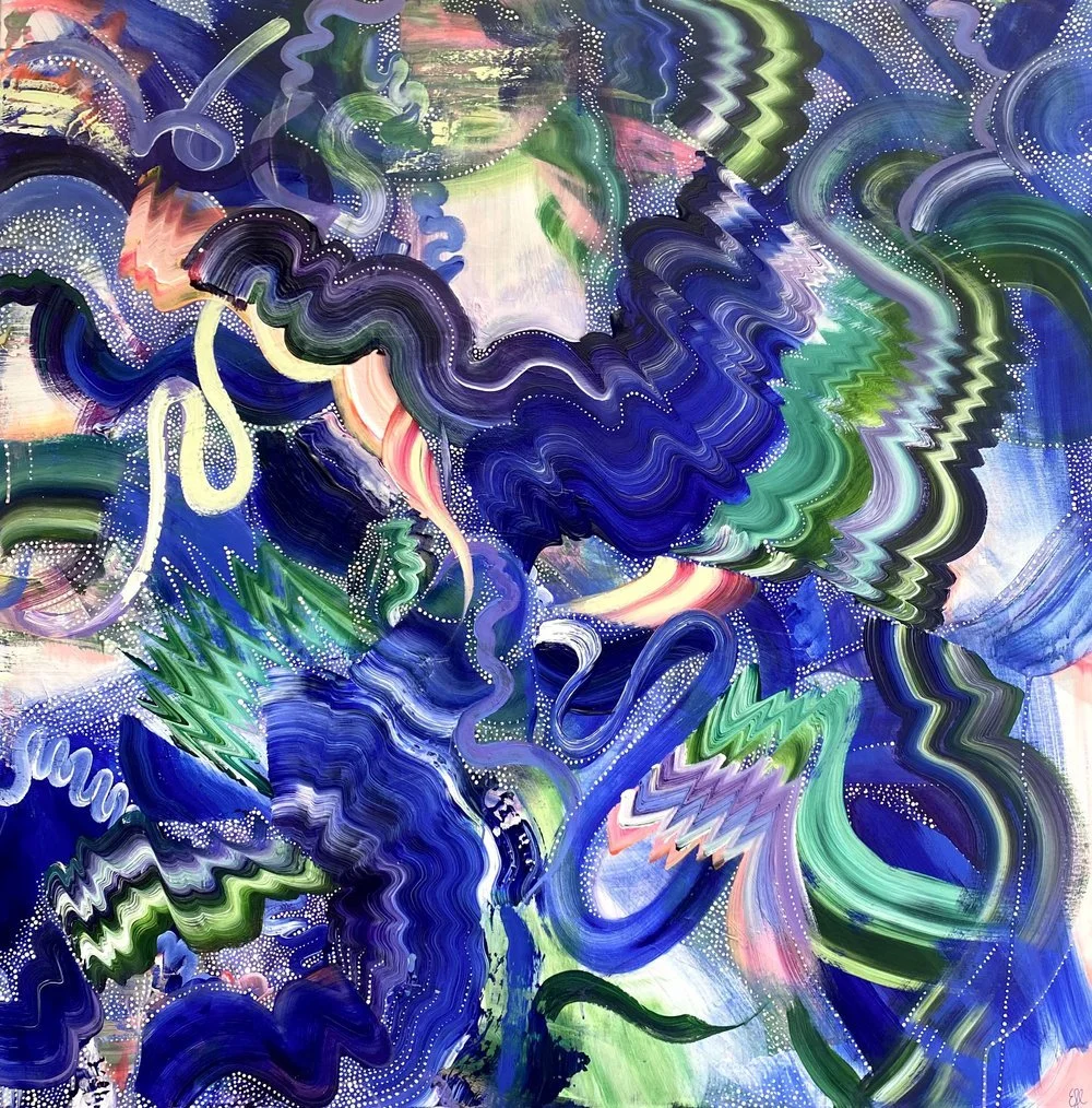 Emma Hill is an abstract artist working in acrylics, exploring the joy of color and capturing the beauty of the wild and the hidden patterns within the seemingly mundane aspects of nature.