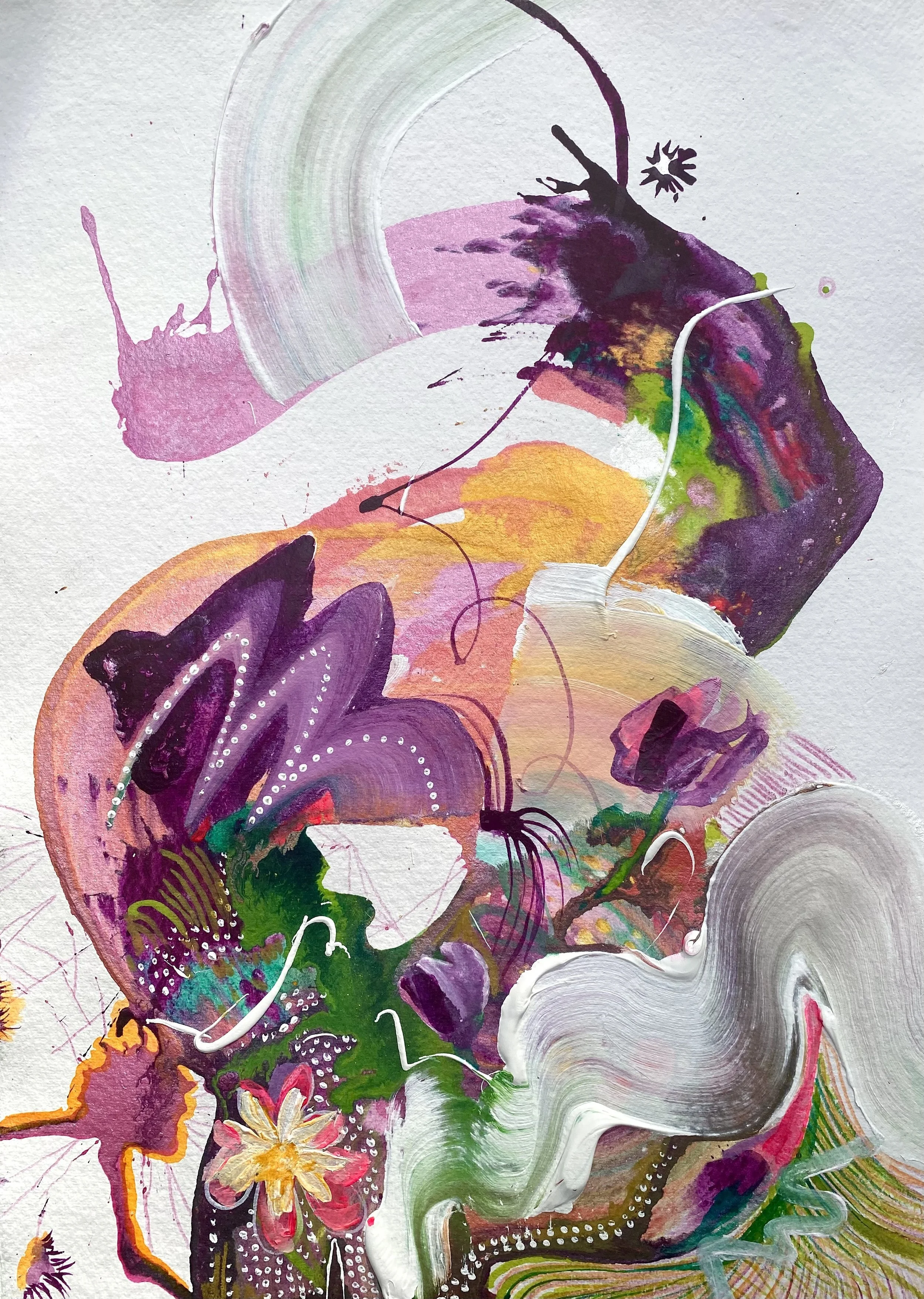 Creativity is a profound act for me. The transformation of nothing into something tangible. Working intuitively, I feel my way, trusting the process. Beyond brushstroke, paths beckon exploration, uncovering the intricate landscape of the soul and the interconnected threads of universal consciousness that bind us together.