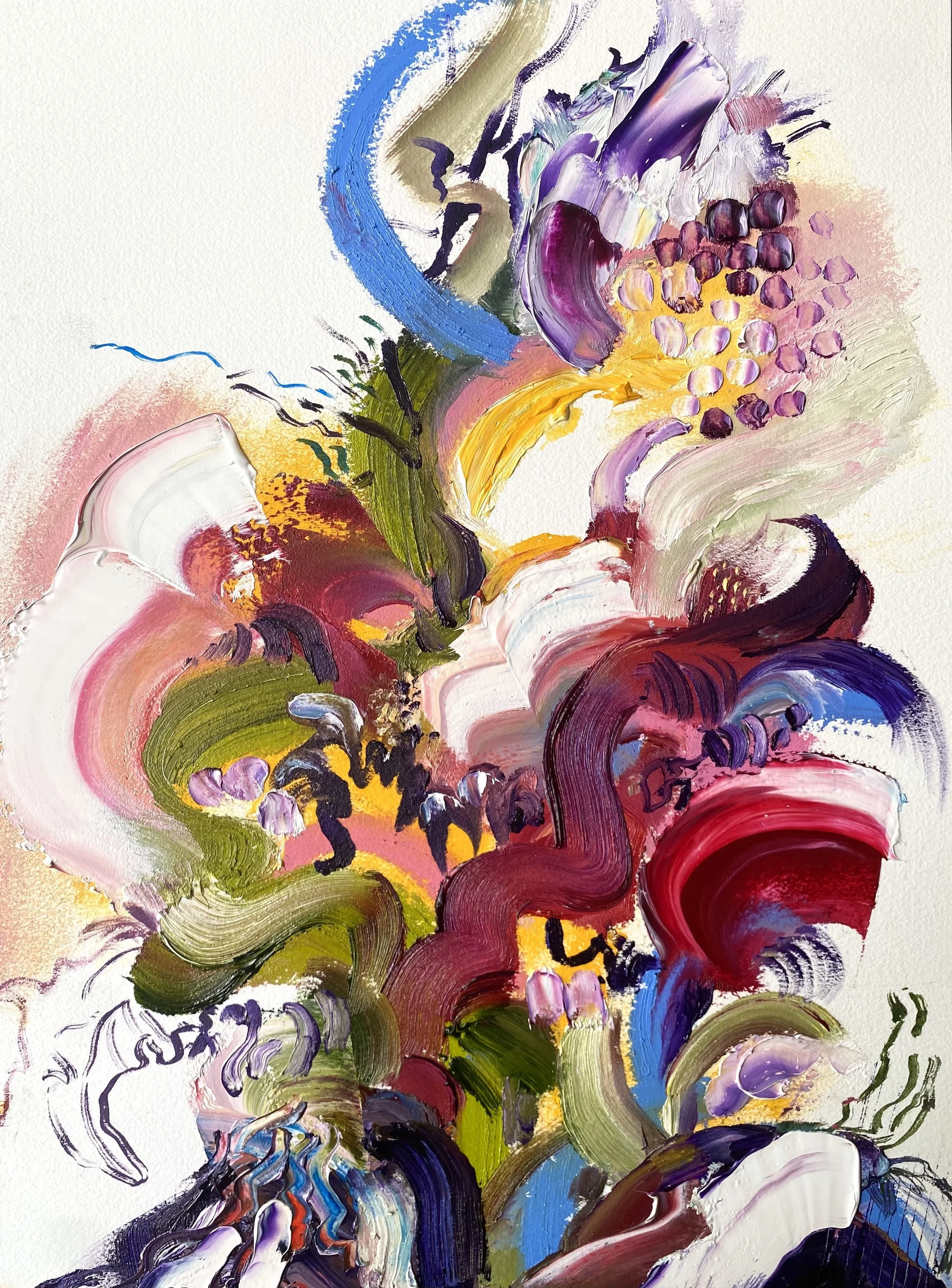 Emma's paintings are intuitive, raw, and self-expressive, blurring the lines between impressionism and graffiti. Instead of adhering to traditional methods of representation, her use of color and texture serves as a documentation of her emotions, preserving memories of specific moments in time and place.